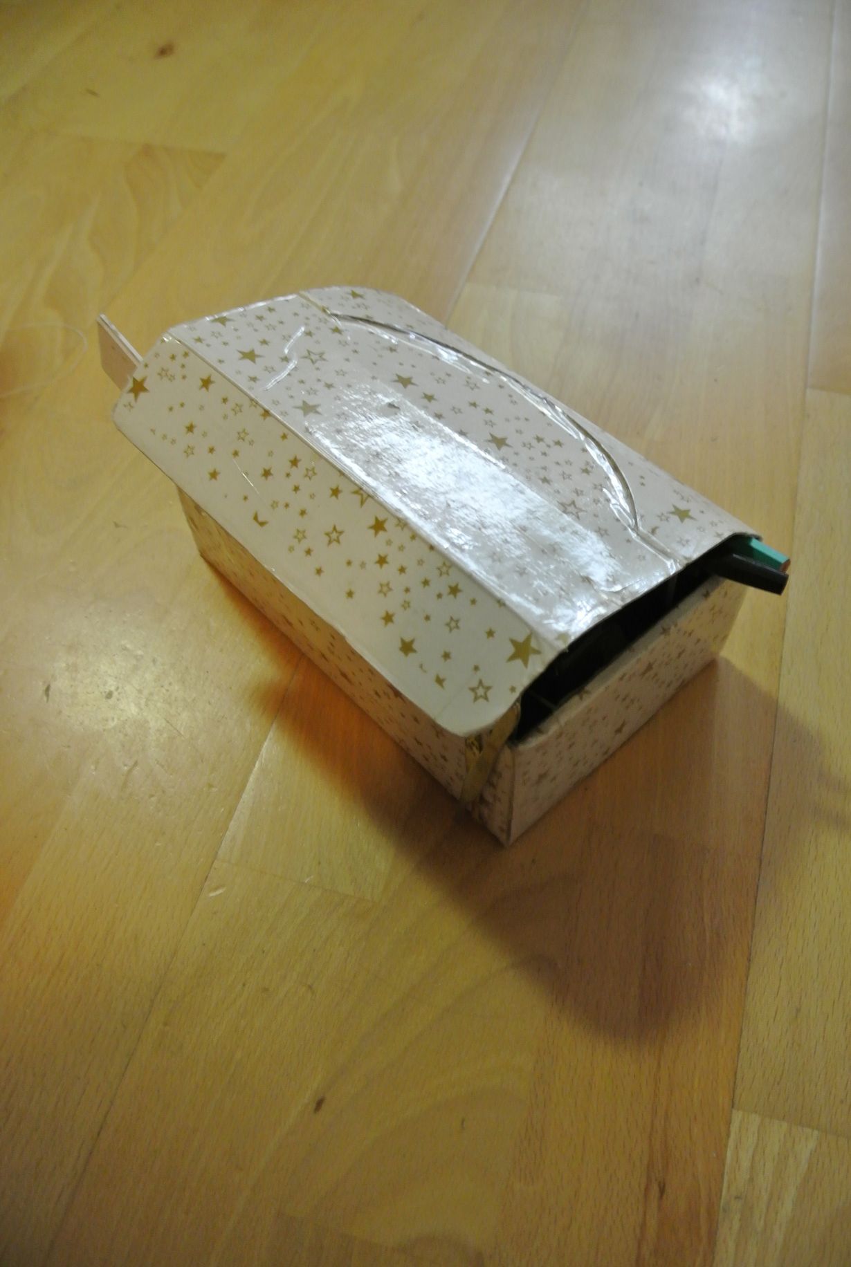 Tähtikoristeinen pahvinen laatikko kätkee sisäänsä kasan toimistotarvikkeita, joten kotitoimistoni ei läppärin lisäksi paljon muuta vaadi.