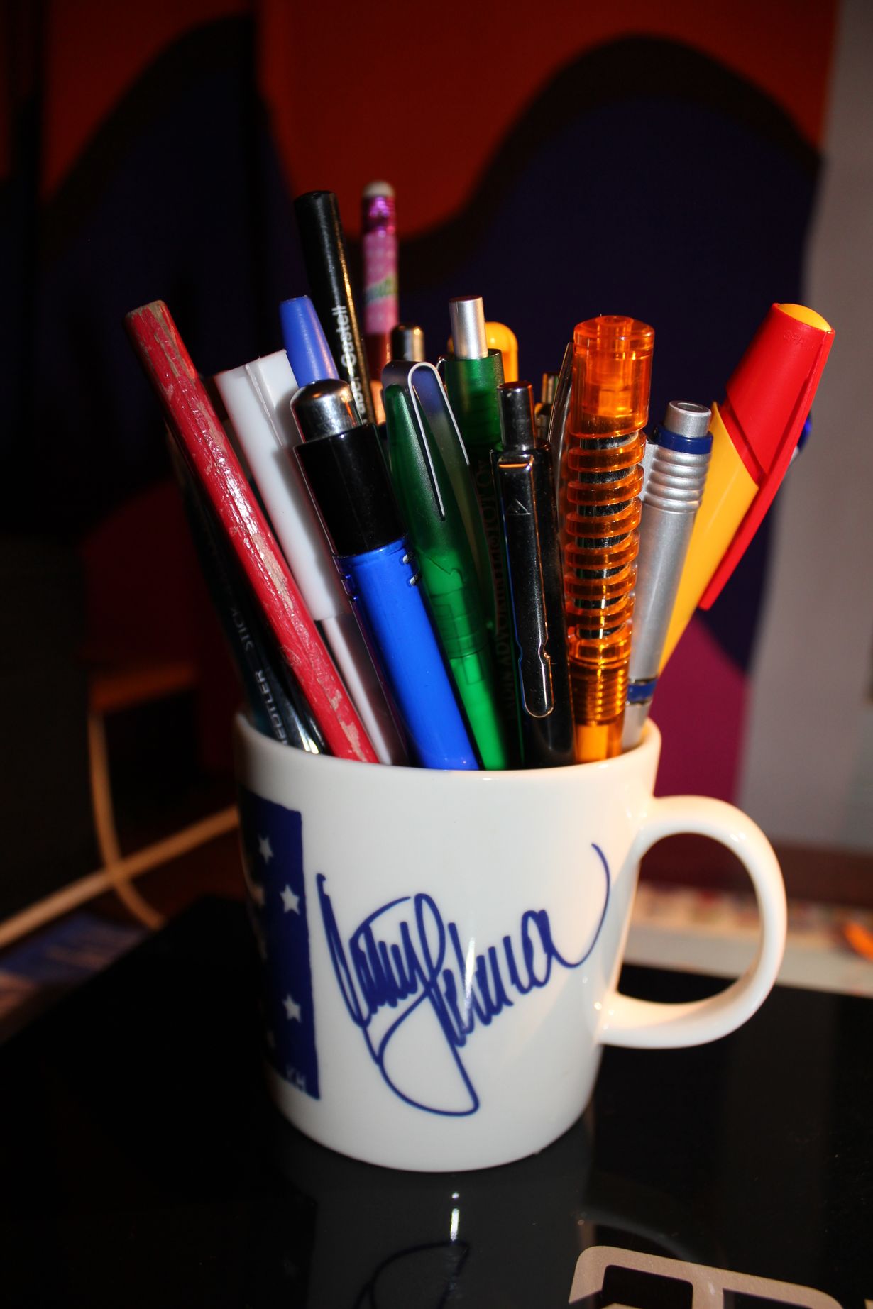 Tämä ihana arki: kynäteline KYNÄMUKI 17.1.2014 klo 0:25 Tämä muki tuli hankittua Katri-Helenan nimikirjoituksen vuoksi. Sitten huomasin että se oli saanut kynämukin tehtävän! uolevi62