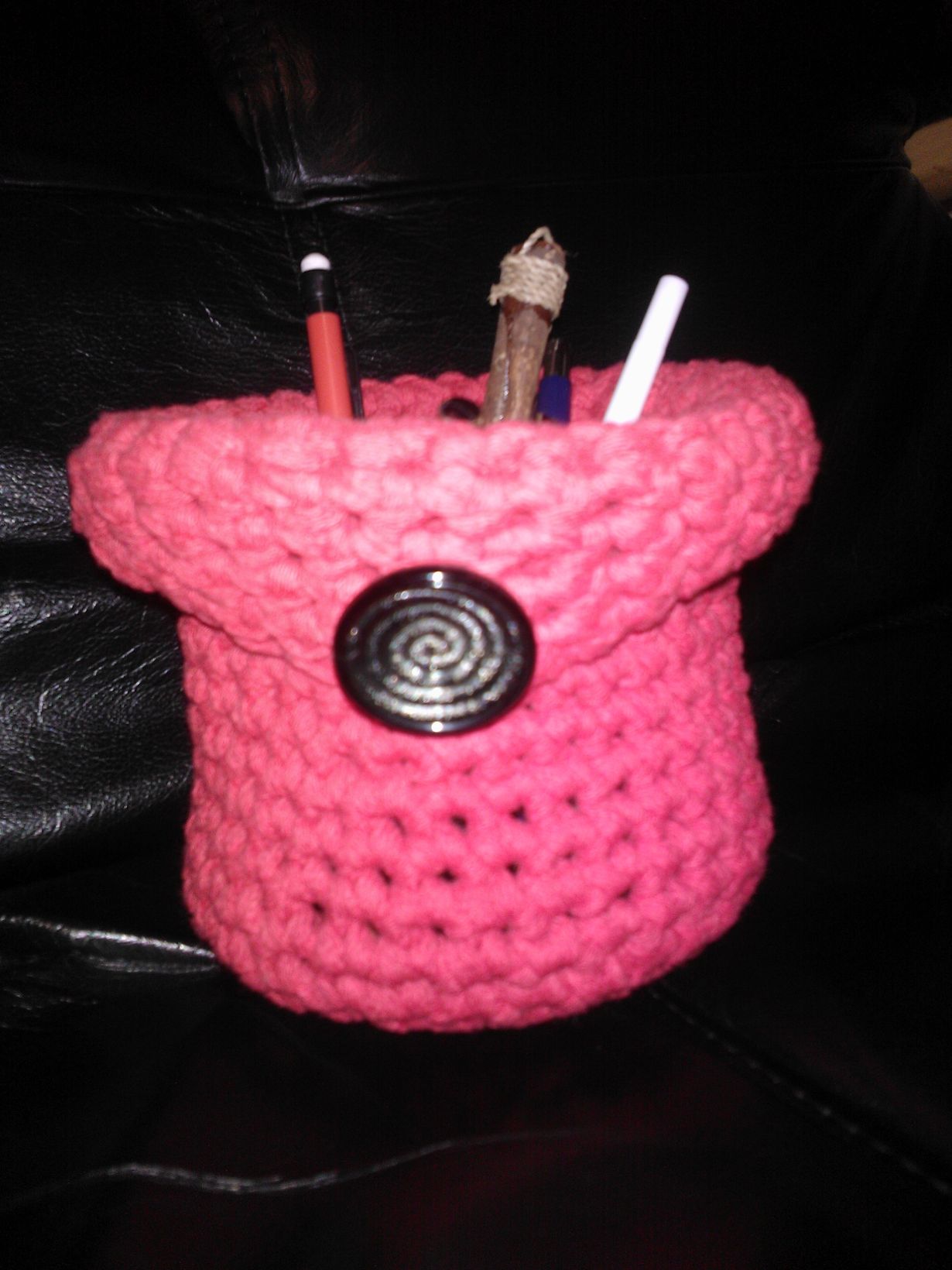 Tämä ihana arki: kynäteline Kynäteline 9.1.2014 klo 19:36 Tein tämän itse virkkaamalla keväällä 2013 Virkkaaja