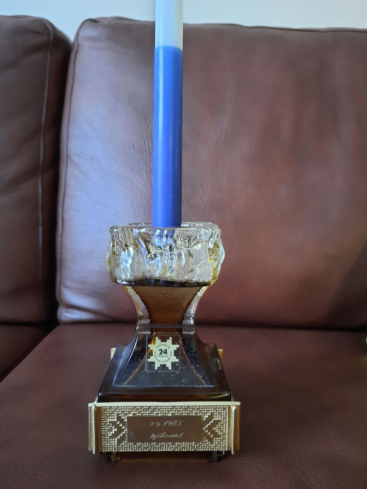 Kynttilänjalka on saatu vuonna 1985 lahjaksi työkavereilta, kun muutin pois paikkakunnalta. Esine on kulkenut mukanani kaikki elämäni vuodet ja se on minulle edelleen tärkeä muisto hyvästä työroveruudesta ja hauskoista vuosista.