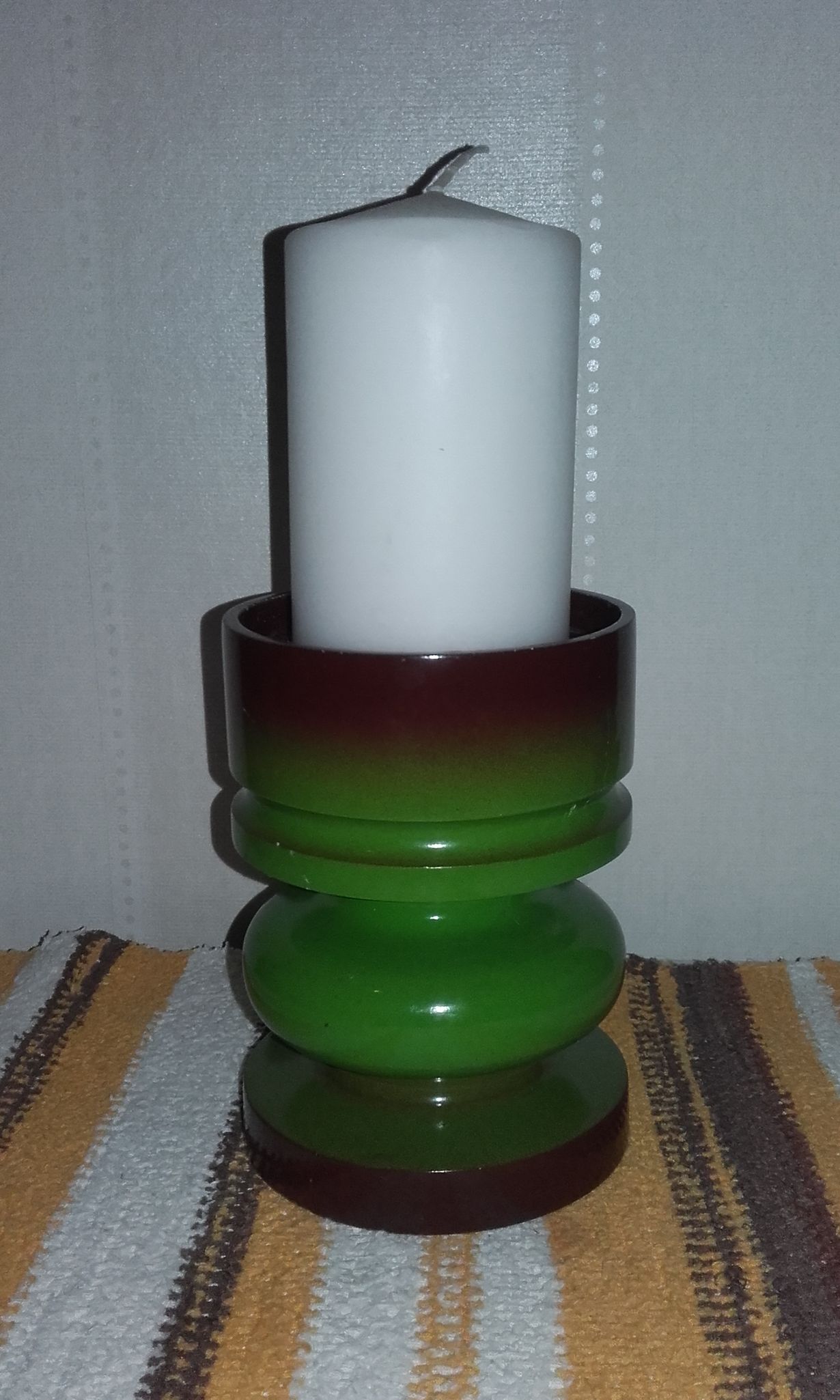 Ostin 1973 jouluksi tämän kynttilänjalan Jyväskylästä tulevalle anopilleni. Nyt kynttilänjalka on omalla pöydälläni, anoppini kuoli marraskuussa 90 vuotiaana.