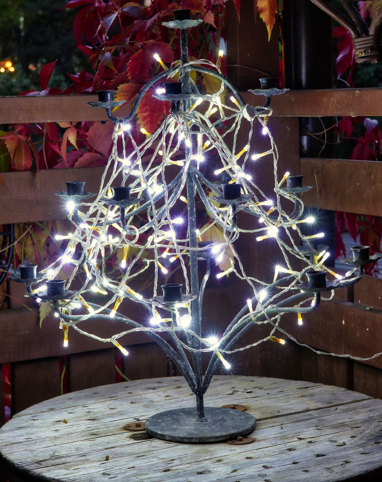 Parvekkeella olevaan kynttilänjalkaan on kierretty led valo