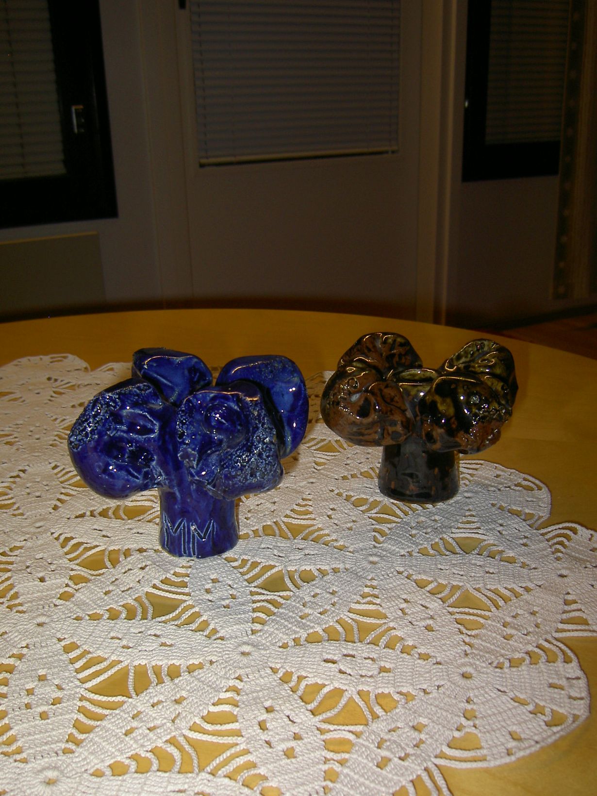 Anu Pentikin keramiikkatehtaan valmistamat kynttilänjalat. Olen hankkinut ne kymmeniä vuosia sitten.