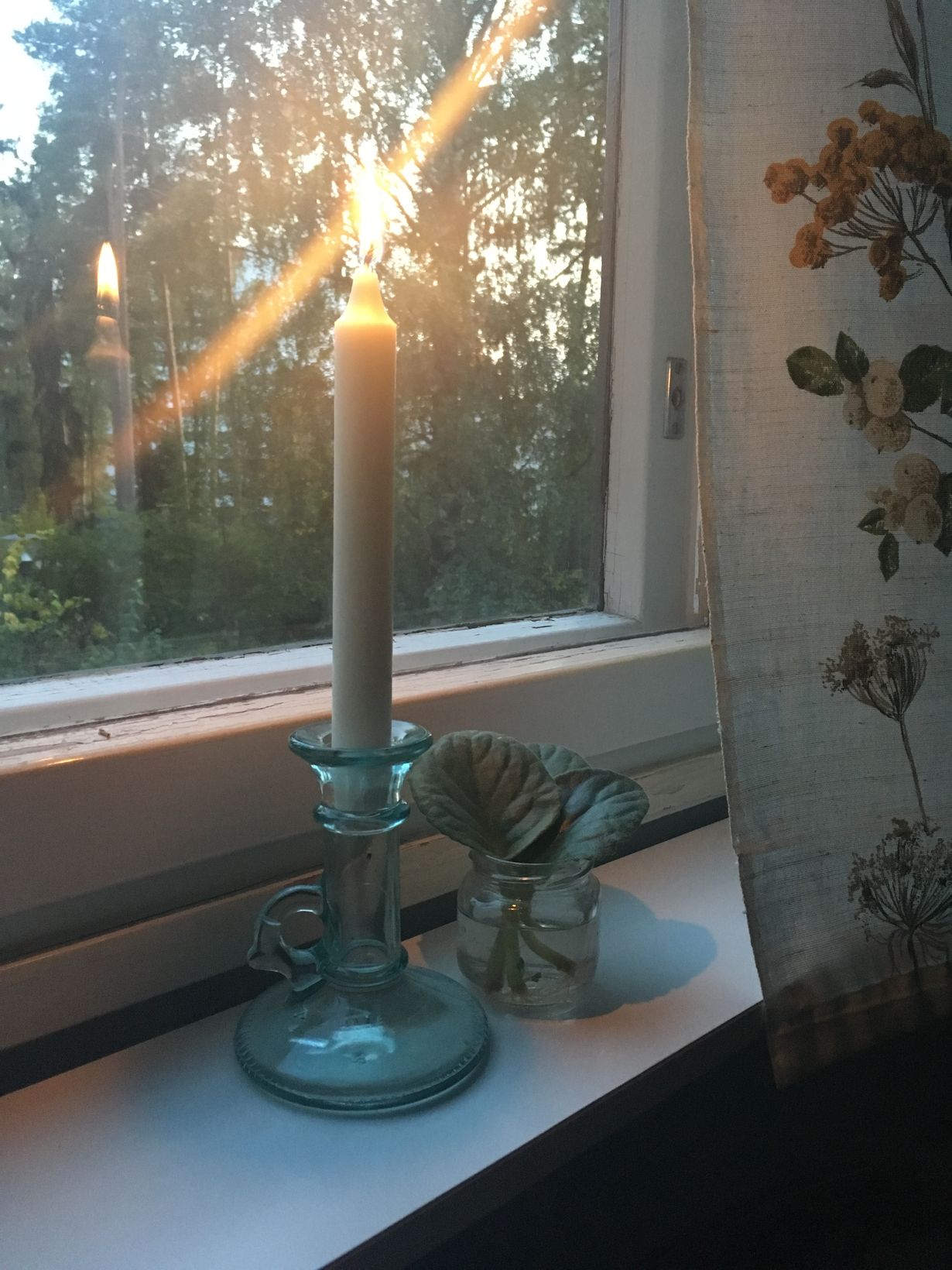 Tädiltä saatua yksinkertaisen kaunista kynttilänjalkaa käytin kesällä maljakkona pienille luonnonkukkakimpuille. Nyt syksyllä pääsee taas käyttöön kynttilänjalkana.