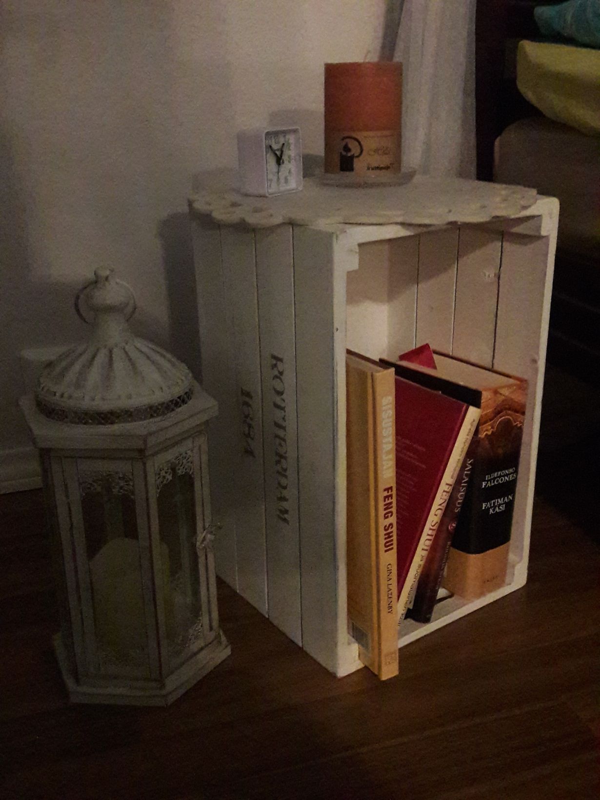 Etsinnässä oli pieni yöpöytä, johon saisi muutamia kirjoja, mutta toivotunlaista ei löytynyt. Tämä säilytyslaatikko löytyi Tiimarista ja on toiminut yöpöytänä paremmin kuin hyvin.