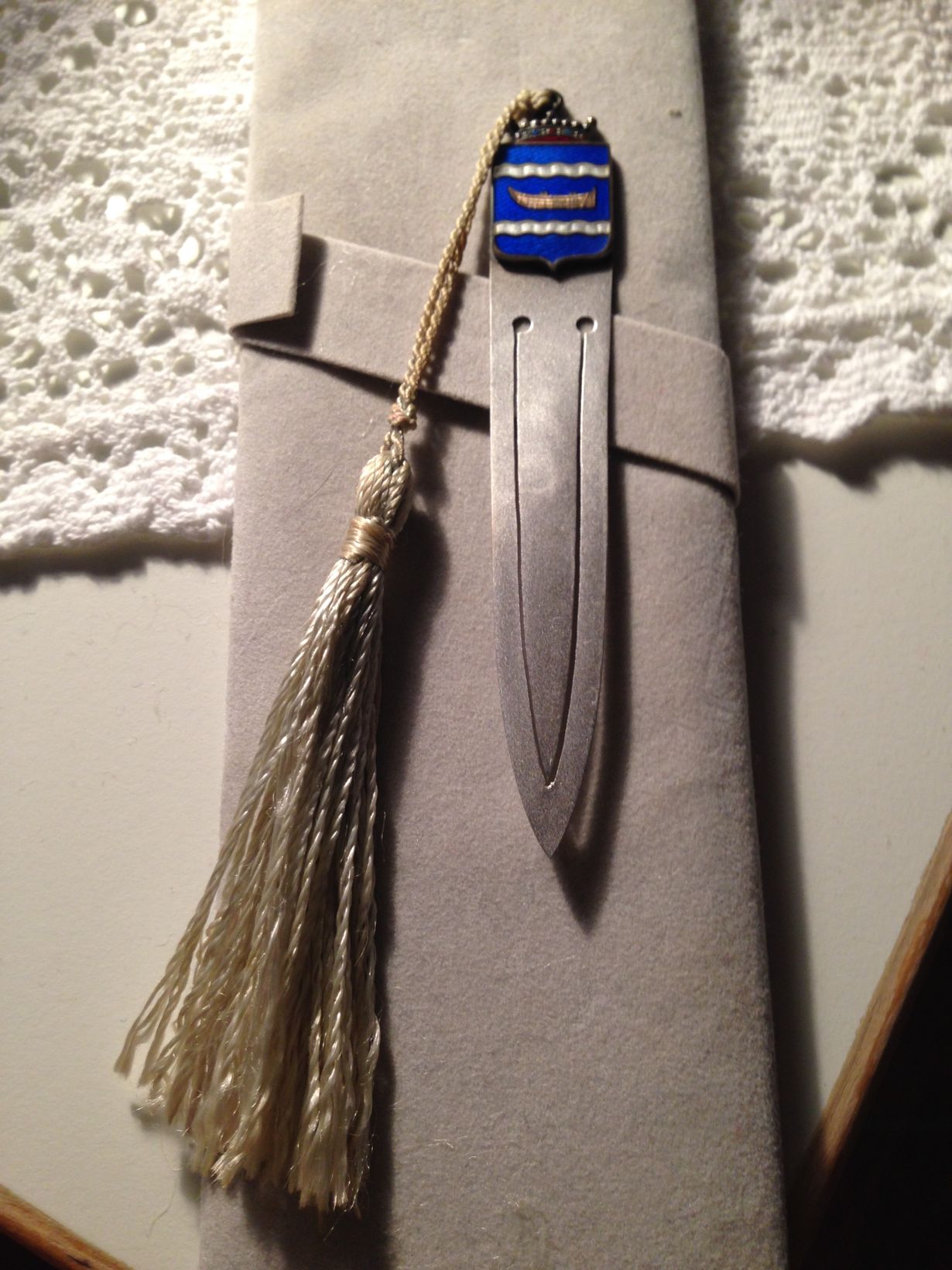 Tämän Helsingin vaakunalla varustetun hopeisen kirjanmerkin sain Helsingin kummeilta syntymäpäivälahjaksi pikkutyttönä 70-luvulla. Olin todella iloinen, kun löysin sen jälleen pari viikkoa sitten laatikoita siivotessa <3
