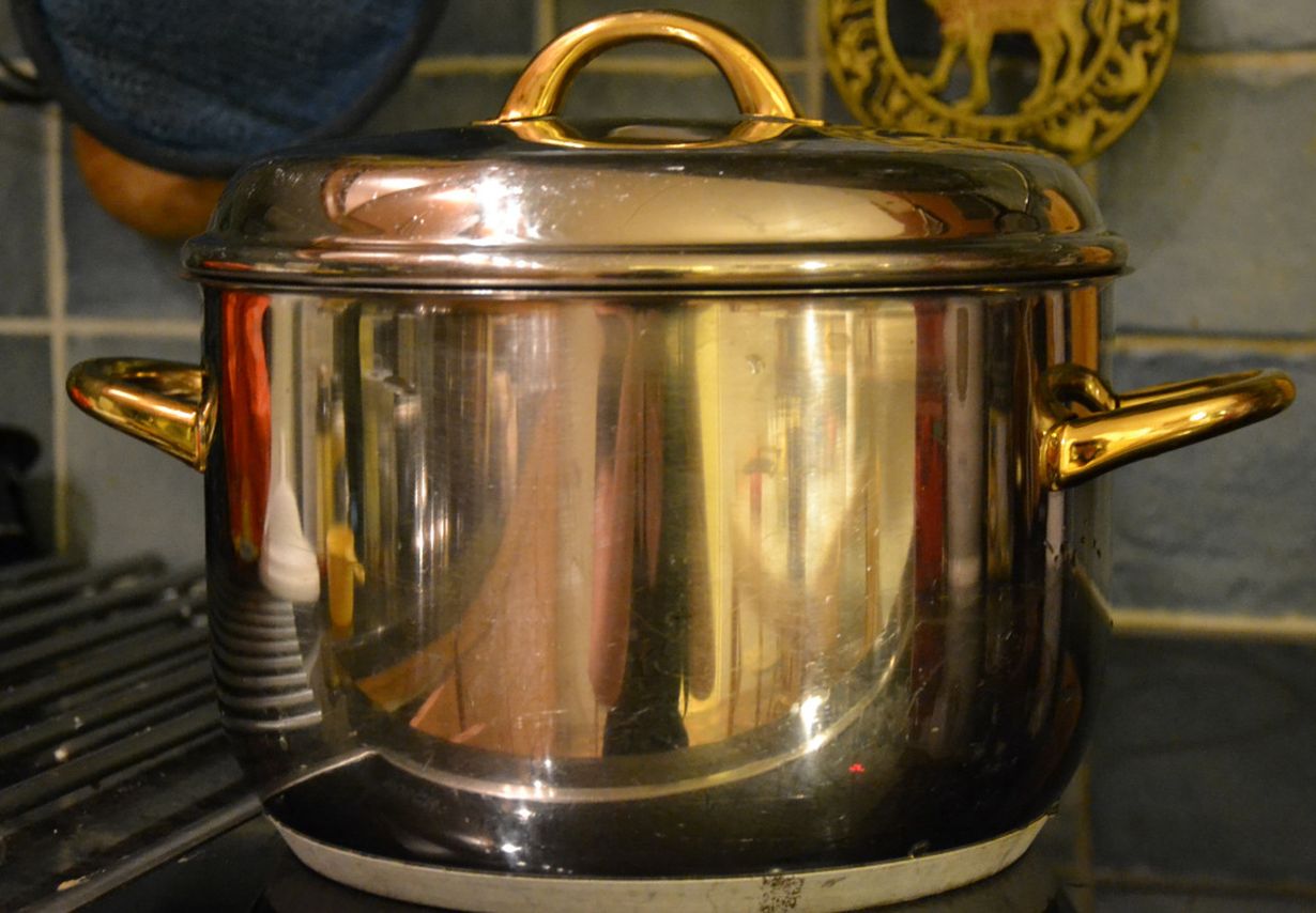 Olen saanut kattilan lähes kymmenen vuotta sitten 93-vuotiaana kuolleelta mummoltani. Vielä viimeisinä vuosinaan hänelle oli tärkeää antaa lapsenlapsilleen lahjoja, usein tarpeellisia käyttöesineitä kuten tämä iso kattila. Sen lisäksi, että kattila on kaunis - tosin jo aika tavalla naarmuttunut - se on kokonsa takia erittäin käyttökelpoinen ja edelleen meillä käytössä lähes viikottain.