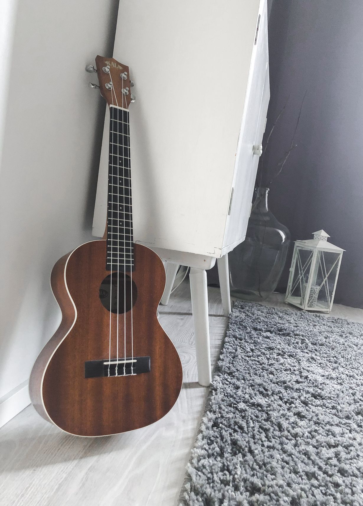 Kitaristi-musiikinopettaja mieheni antoi ukulelen lahjaksi, kun valmistuin ammattikorkeakoulusta. En ole ennen soittanut mitään, mutta haaveilen laulamisesta ja itseni säestämisestä. Kaupan päälle sain loppuelämän soittotunnit. <3