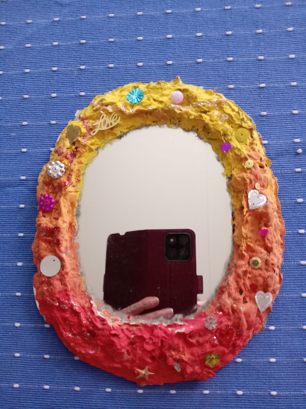 Lähetä kuvakisaan kuva käsipeilistäsi- voita NOSH -etukoodi! Lahja ystävältä E 14.10.2024 klo 17:21 Sain peilin lahjaksi pieneltä ystävältäni vuosia sitten. Hän on tehnyt sen taidekerhossa.