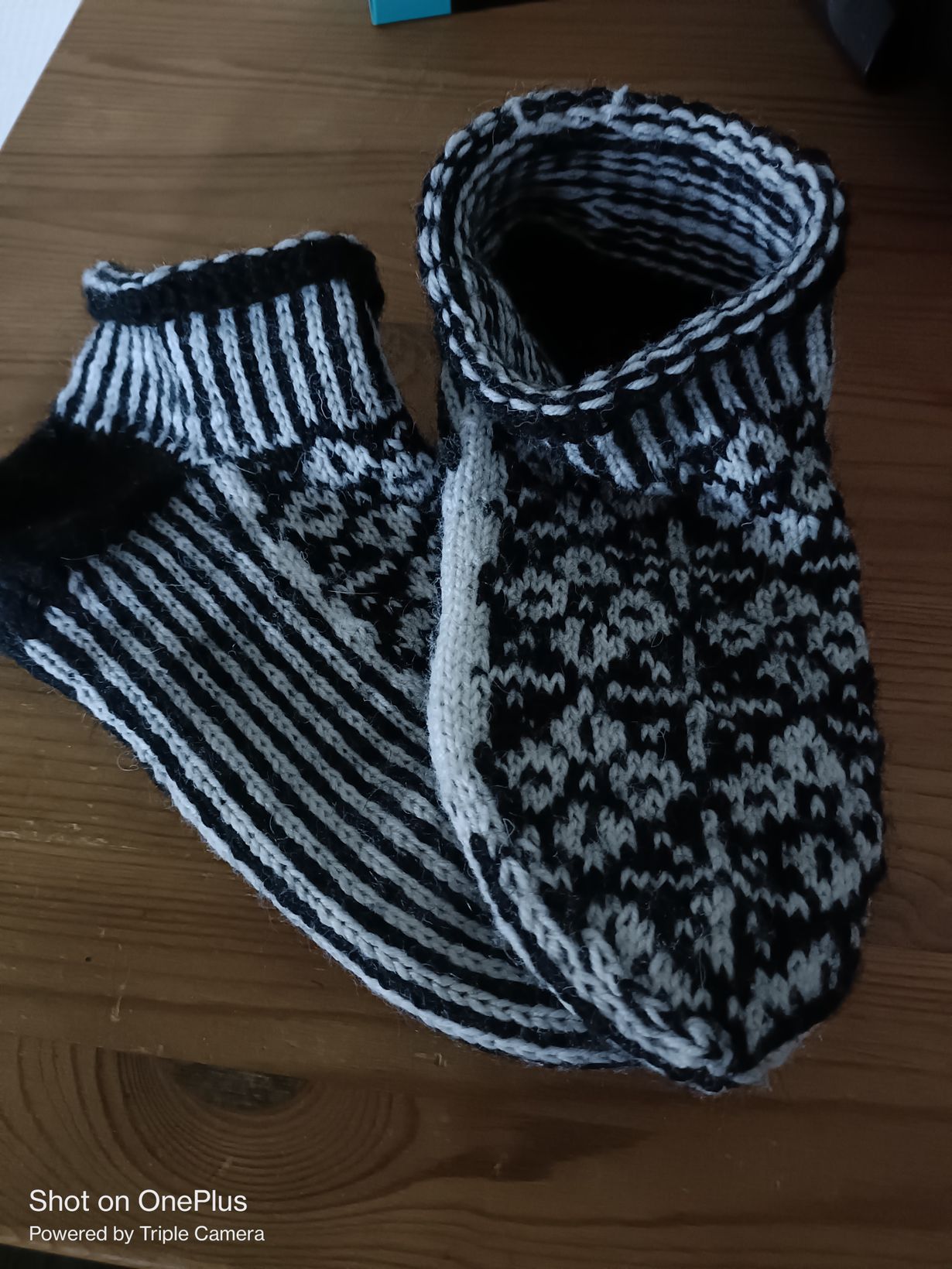 Lähetä kuvakisaan kuva lahjaksi tehdystä käsityöstä - voita Familonin pellavalakanat Lahjaksi tehdyt käsityöt Tossukat 2.10.2025 klo 19:04 Tossut tyttärelle lahjaksi. Mustavalkoiset hänen toivomuksestaan.