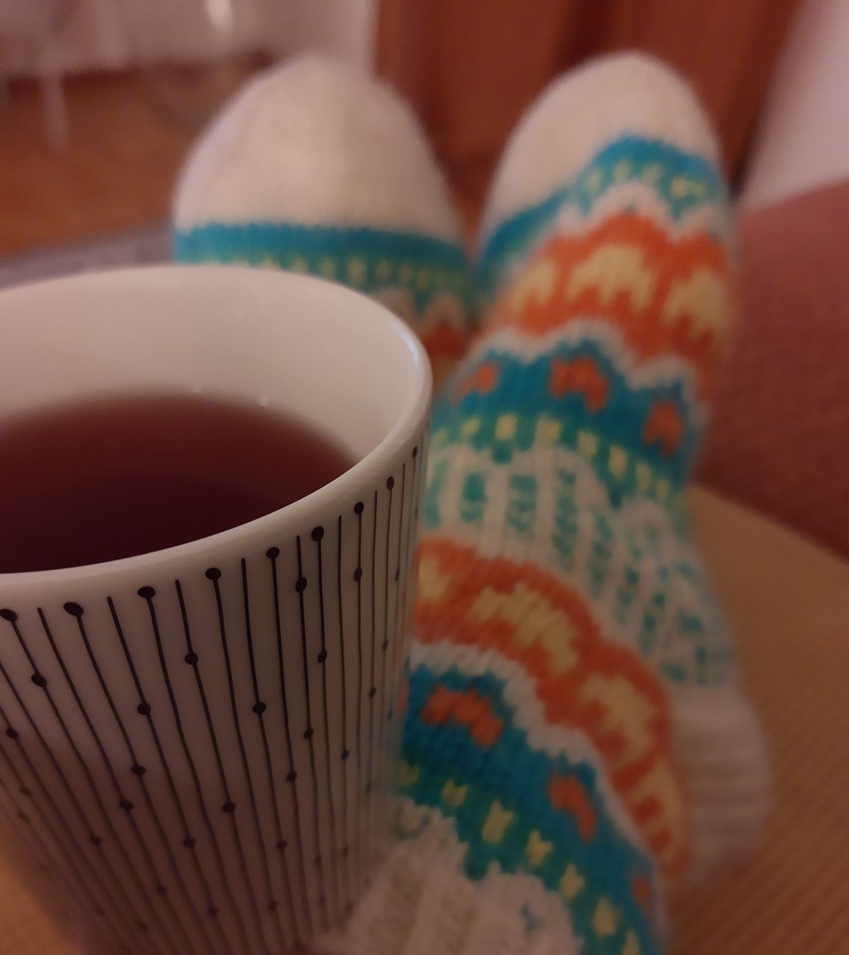Kaamosta vastaan ei kannata taistella, vaan ottaa siitä kaikki irti. Sohvannurkka, glögi ja KK:n ohjeilla valmistuneet villasukat lämmittävät sisäisesti ja ulkoisesti.