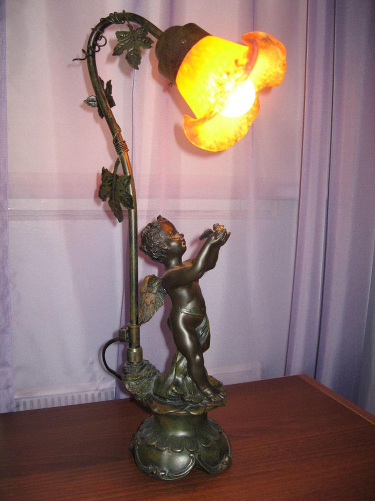 Niin sievä lamppu, että oli aivan pakko saada vaikka olikin kallis. Pitkään etsi omaa paikkaansa, ja siipeäkin on korjailtu liimalla. Tästä lampusta en luovu!