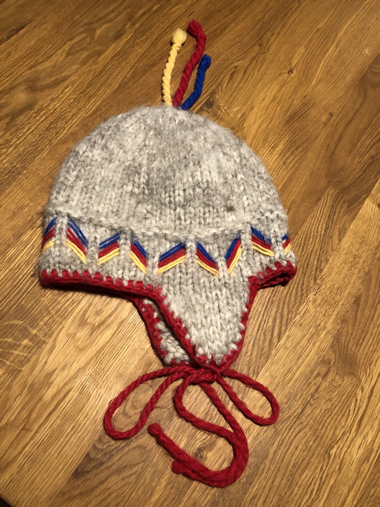 Lapin pipo ostettiin yli 15 vuotta sitten pojalle Luostolta laskettelureissulla. No, jonkun kerran hän sitä piti ja sitten se jäi kaappiin, joten otin käyttöön. On minulla useampi kiva pipo, mutta tätä tulee pidettyä kun on oikein kylmä. Vanutettuna pitää tuulenkin. Oikein hyvä koiralenkille.