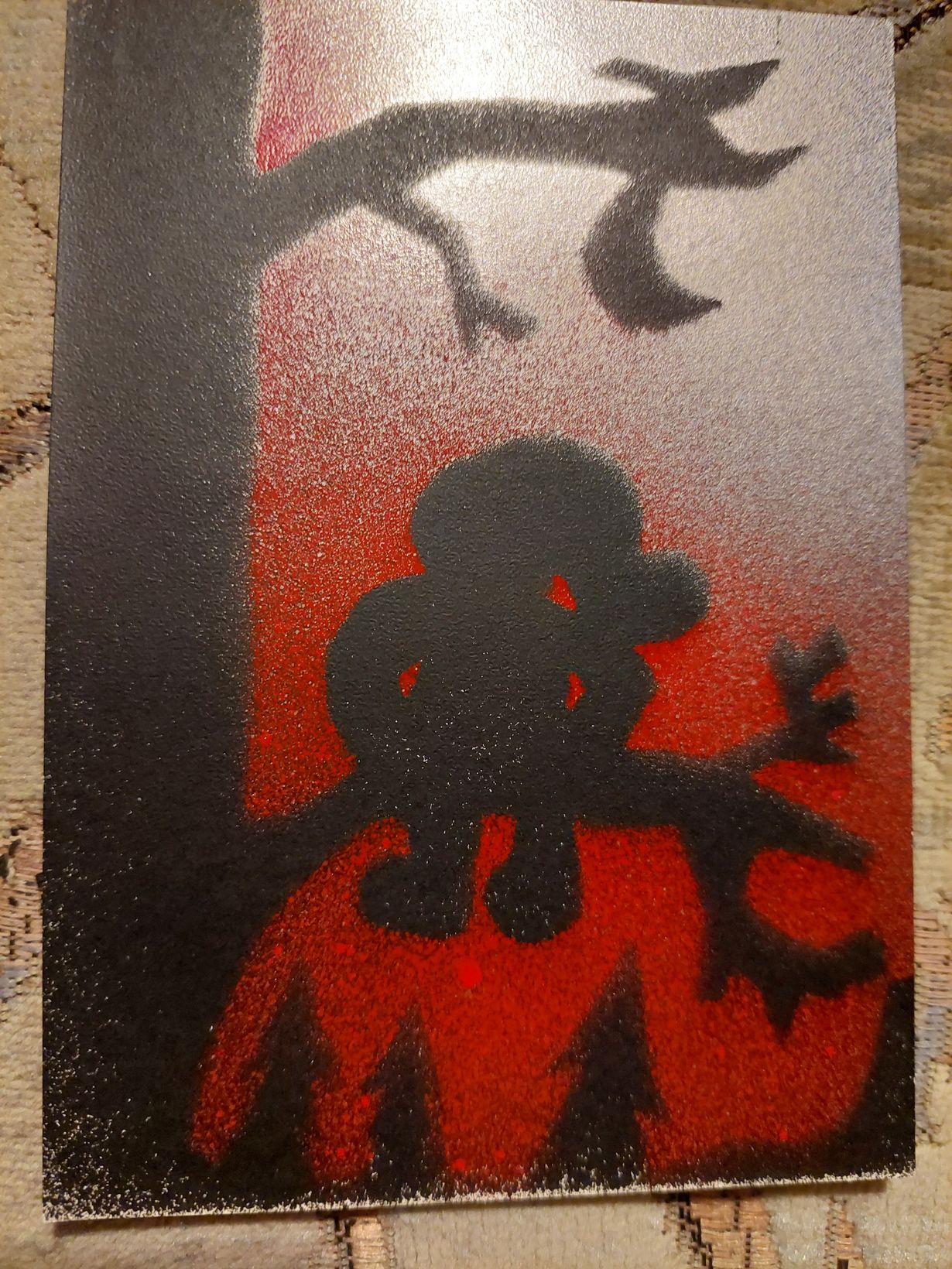 Kummipoikani oli tehnyt koulussa joulukortin painotekniikalla.Siihen oli kirjoitettu hyvän joulun toivotus ja "voi hyvin",