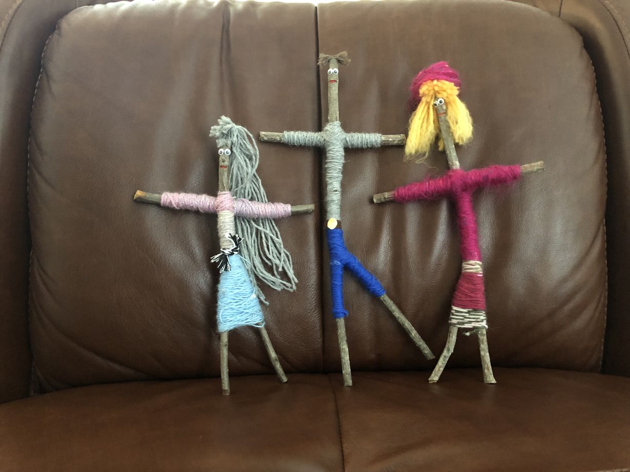 Lähetä kuvakisaan kuva lapsen askartelusta - voita NOSH -lahjakortti! Lapsen tekemä askartelutuö Leena Lampi-Sammatti 29.9.2022 klo 23:00 Lapsenlapseni Ulla askarteli keppi hahmoja mummun langan lopuista ja kepit löytyi metsästä.