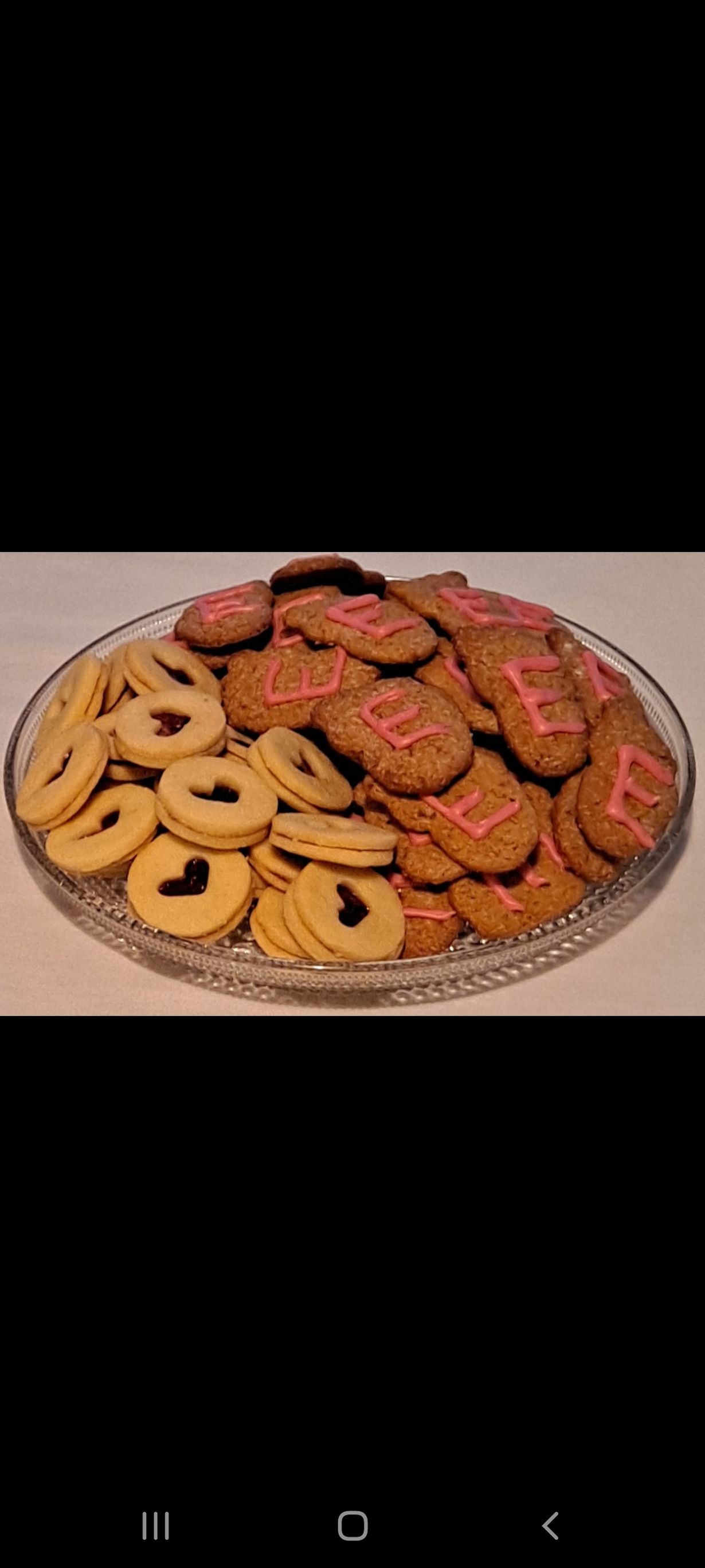 Pikkuleipiä Elli-lapsenlapsen kastepöytään.