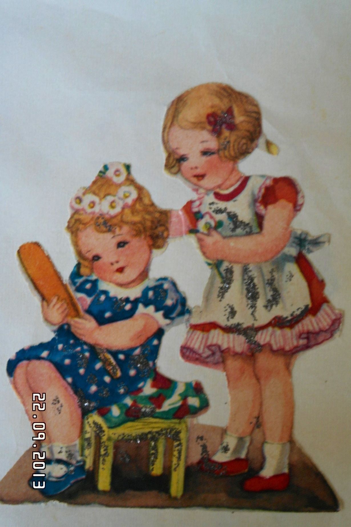 Tämä kiiltokuva on muistojeni kirjassa, minkä olen tehnyt lapsena. Tämä oli minulle tärkein kiiltokuva, koska kuva muistuttaa minua ja rakasta siskoani, kun olimme pieniä.