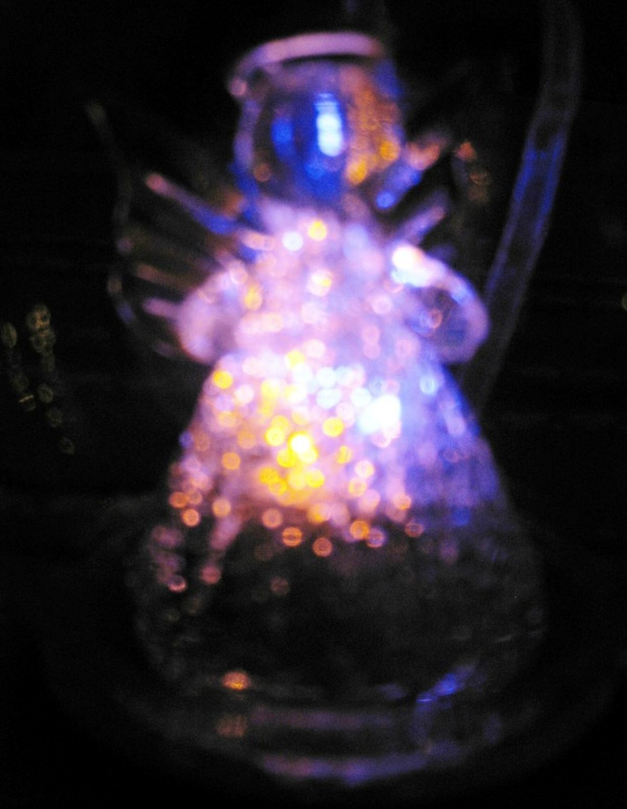 Ihana lasinen väriään muuttava jouluenkeli tuo tunnelmaa pimeään joulunaikaan.