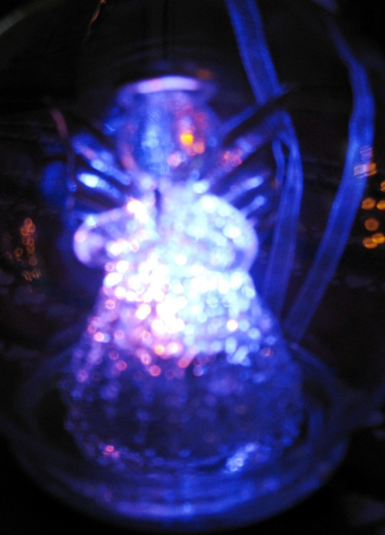 Ihana lasinen väriään muuttava jouluenkeli tuo tunnelmaa pimeään joulunaikaan.