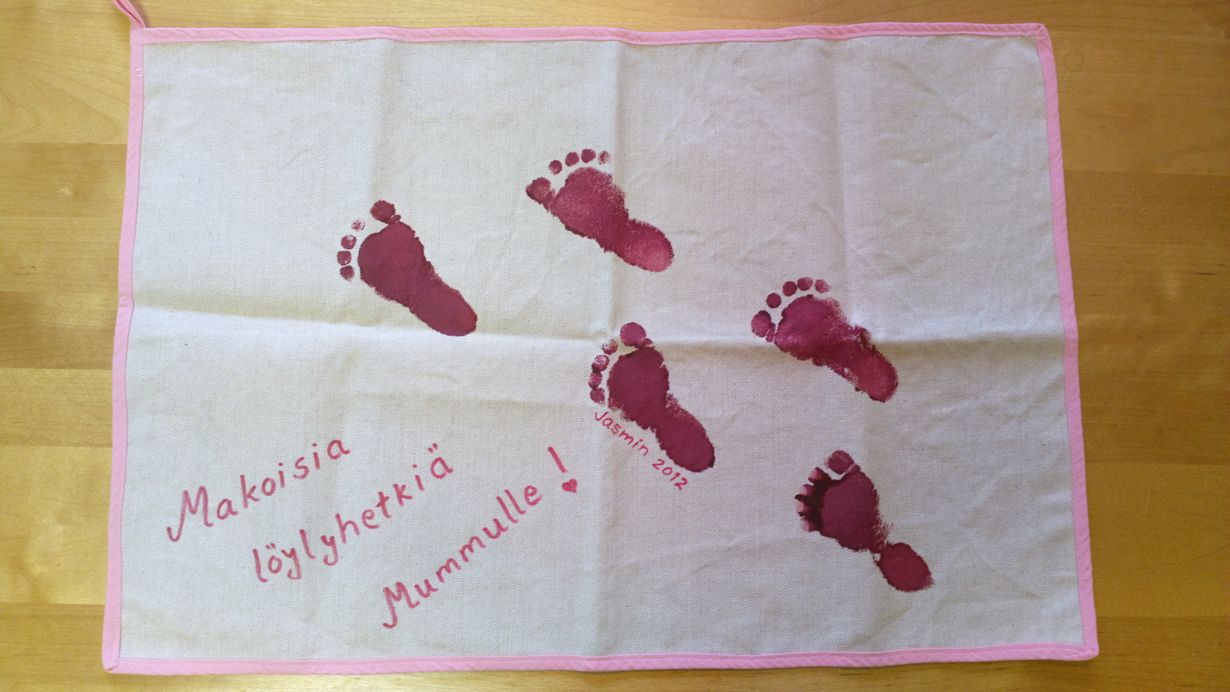 Äitienpäivälahja 2012 jossa lapsenlapseni jalan jäljet