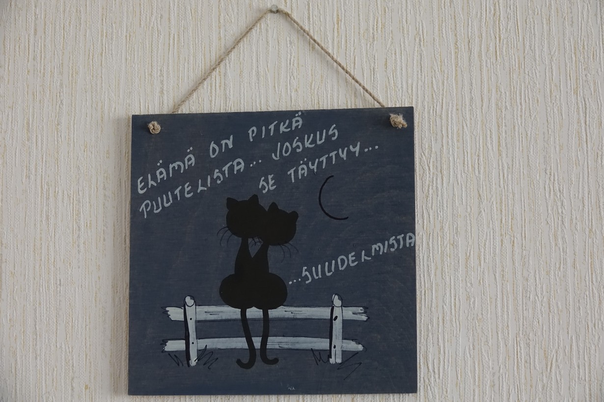 Vieläkin se roikkuu seinällä ja sitä lausetta tulee luettua harva se päivä,kun se on niin totta.