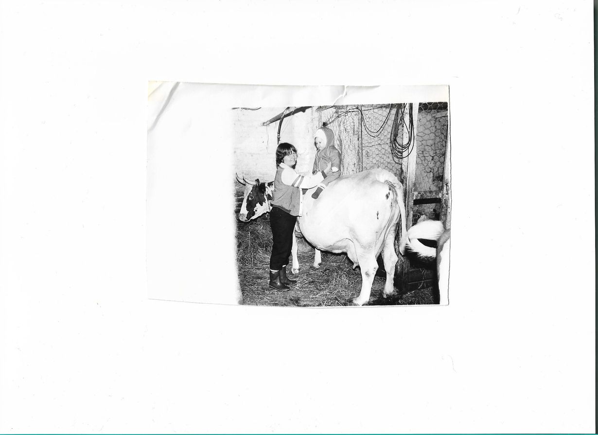 kuvassa,jo pienenä eläinrakas.Ihme lehmän selässä mummolassa <3
