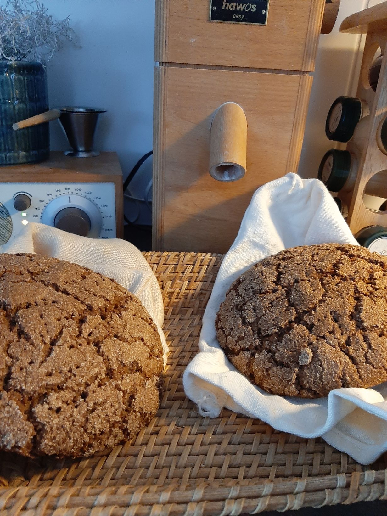 Ties kuinka vanha on leipäjuuri, kun sain sen v.2008 naapuriltani, asuimme silloin Keravalla. Jyvämyllyn hankin v.2010 ja ostan jyvät nykyisin idyllisestä Vääksyn myllyn myymälästä, kun tänne Asikkalaan muutimme. Leipään ei olla kyllästytty, leivon kahden viikon välein, juuri pärjää jääkaapissa. Leipä on mukava vieminen tai lahja monille.