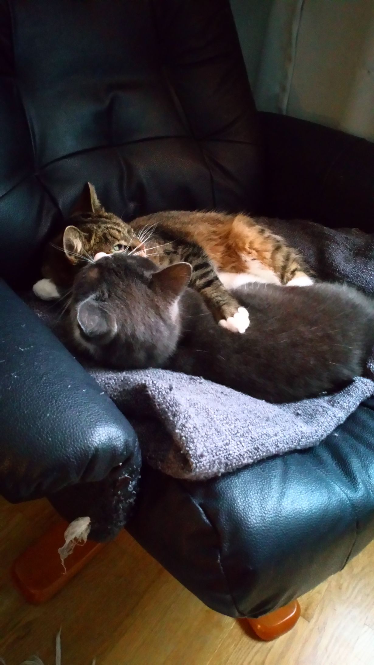 Tämä nojatuoli on vanha, monesta kohtaa puhkikynsitty, eikä sovi sisustukseen. Sattuu olemaan kissojen lempi-unipaikka joten ei sitä poiskaan raaski heittää.