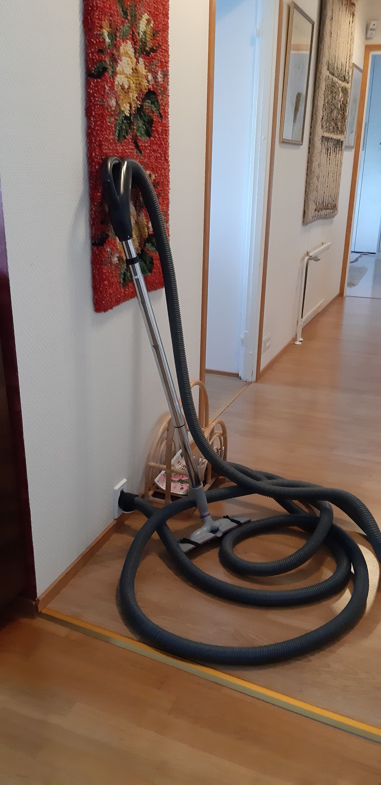 Vanha tavallinen imuri tuntui tunkkaiselta. Sanoin miehelleni että keskuspölynimuri olisi varmaan hyvä. Ei kauan mennyt kun hän oli tehnyt suunnitelman, ostanut osat ja tehnyt sellaisen taloomme! Nyt on ilo imuroida!