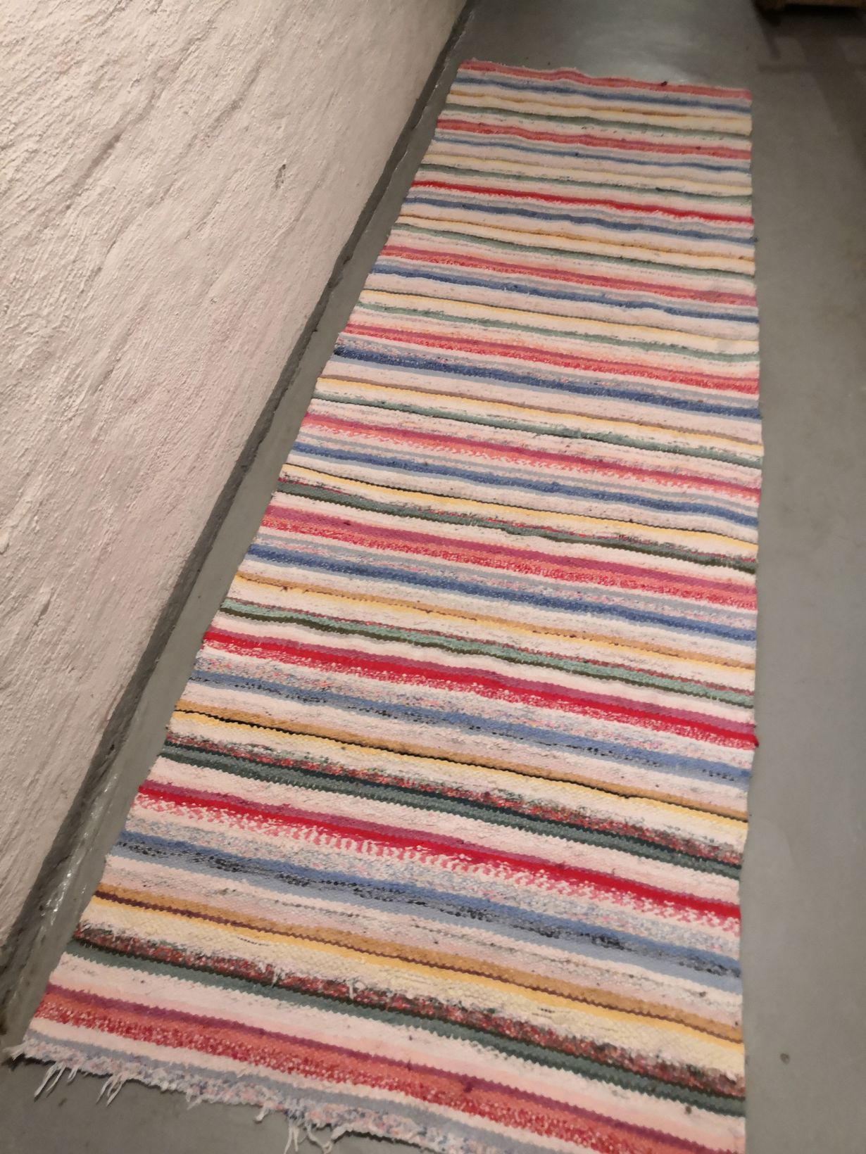 Anoppini 60-luvun lopulla kutoma matto. Värit vielä kirkkaana ja käytössä kuteet ihanasti pehmentyneet. Odottaa varastossa siirtymistä mökille sohvan päälliseksi.