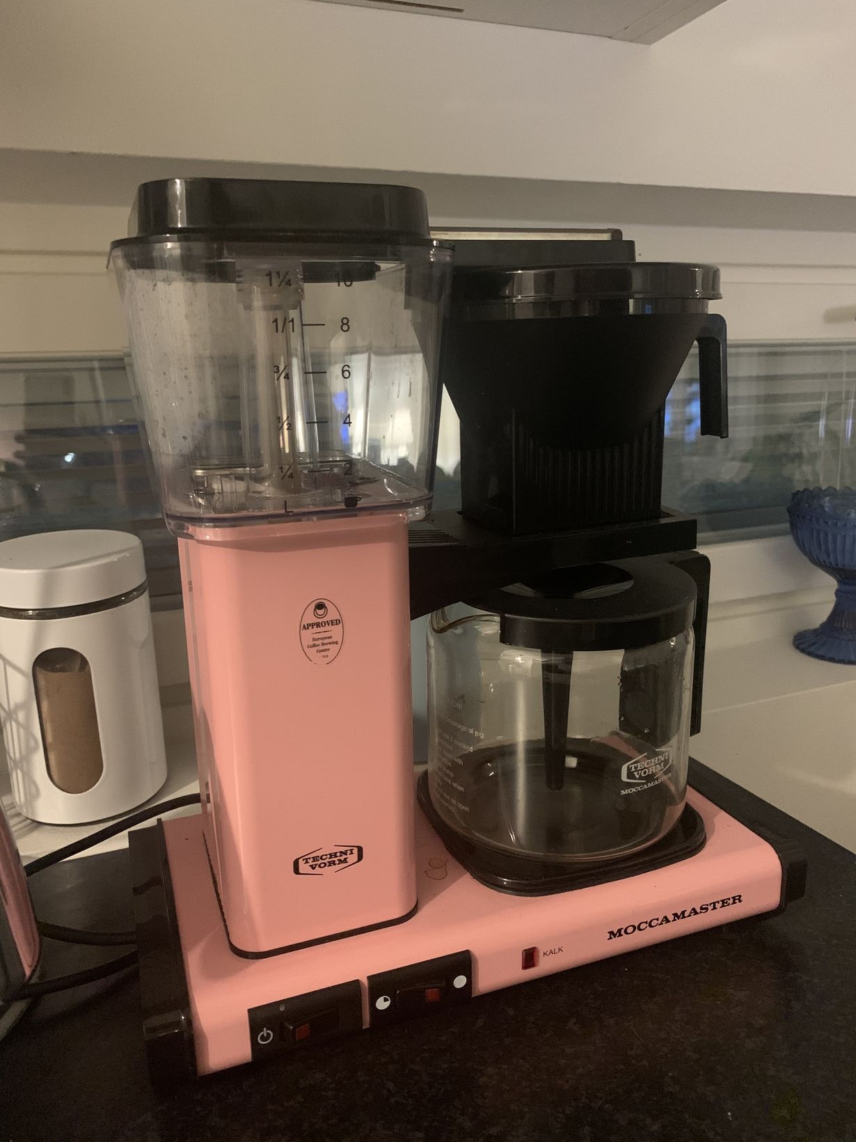 Keittiöni silmäterä ja tärkein kodinkone keittiössäni. Ensimmäinen asia minkä hankin asuntooni oli tämä. Ja vain vaaleanpunainen moccamaster kelpasi tietysti!