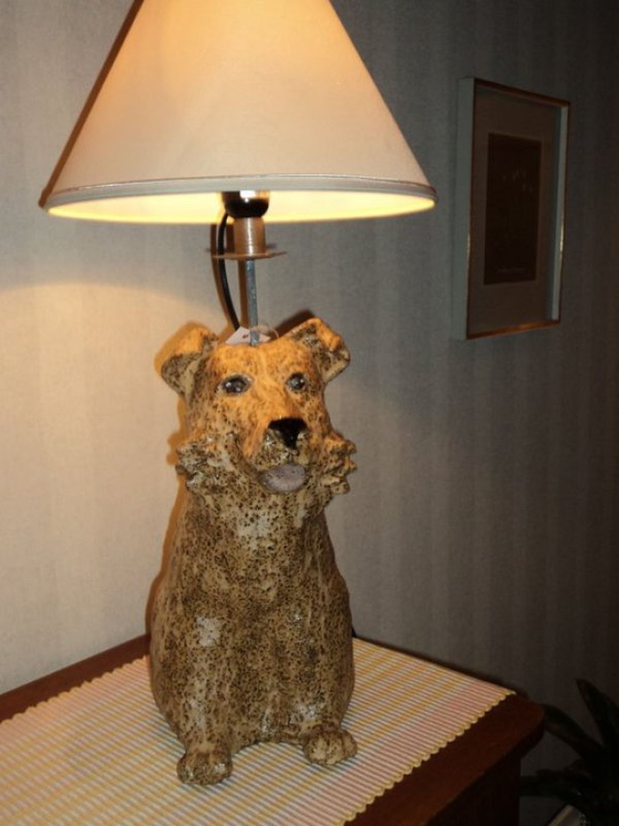 Uniikki pöytävalaisin, minulle Tiina Ranta Porissa, Savisiivessä tilaustyönä valmistanut. Ilahdutin itseäni syntymäpäivänäni tällä taideteoksella. Mallina iki-ihana lemmikkimme Riko. Valaisee, pitää seuraa ja sitä voi ohimennen rapsutella.
