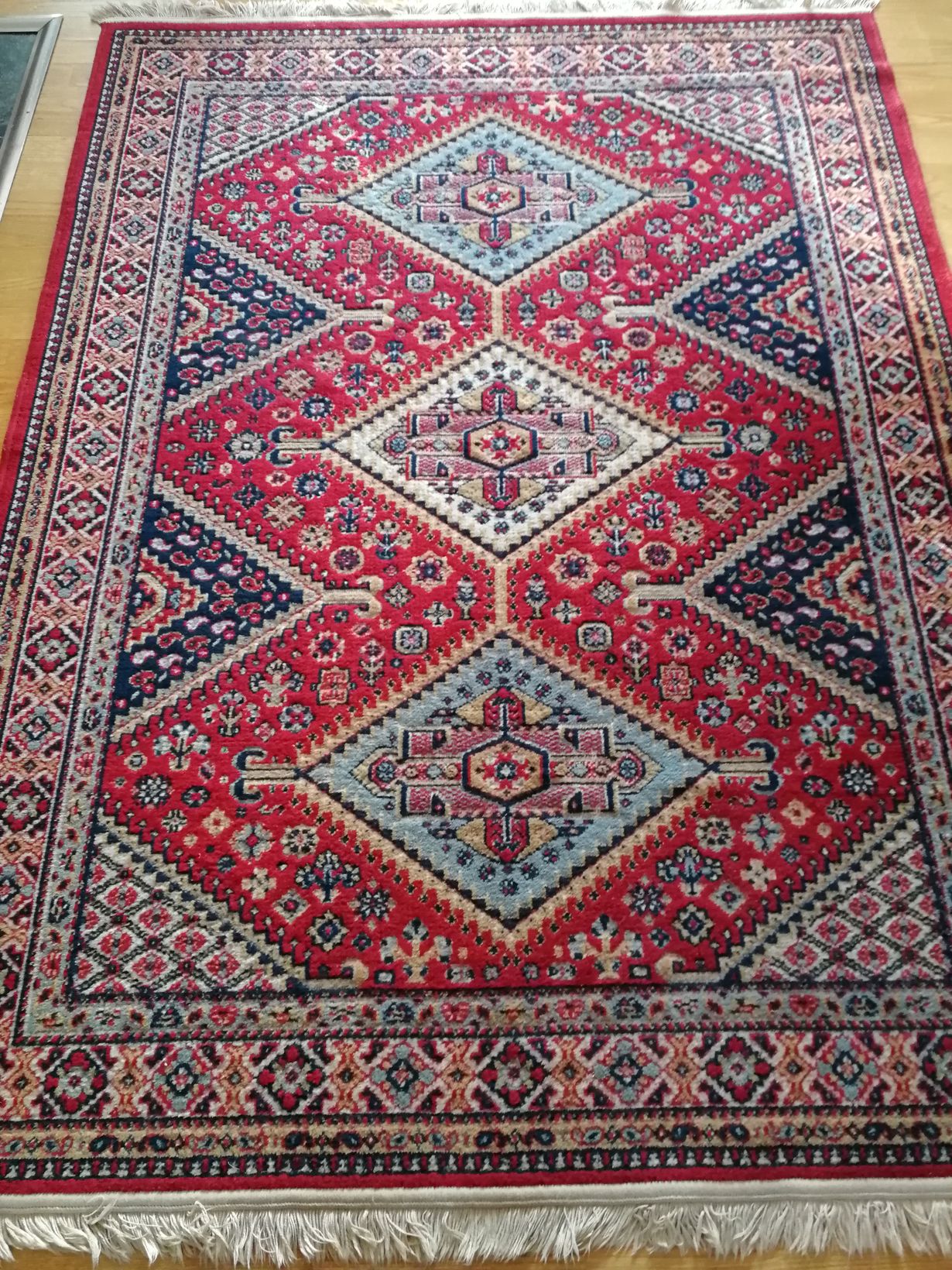 Mattoni löytyi aikoinaan kotimatkalla Lapista Keski-Suomeen, Iisalmelaiselta kirpputorilta. Oli pesua vaille valmis suosikiksi lattialle enkä ole kyllästynyt.