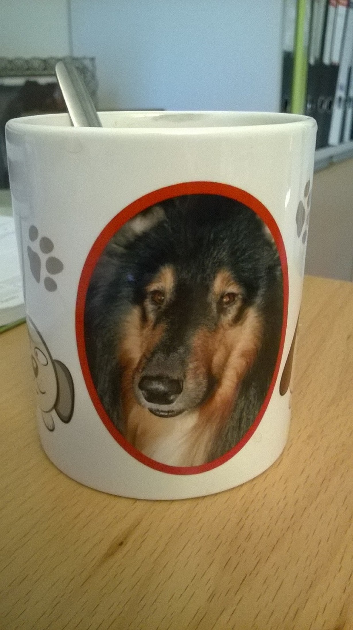 Olen saanut oheisen mukin koirani Petun kasvattajalta, ja koska kyse on elämäni koirasta kaikin puolin, saan mukista iloa töissä joka ikinen päivä. Terveiset ja kiitokset vain Päiville!