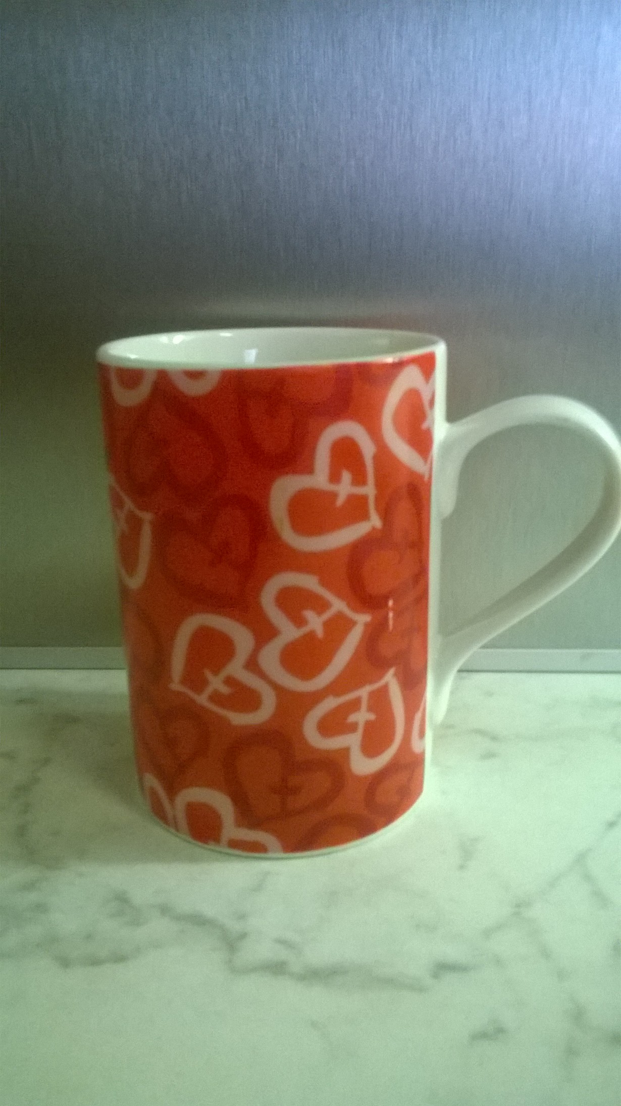 Ostin mukin kirpputorilta vuosia sitten. Se on mielestäni kaunis, käteen käyvä ja sopivan kokoinen. Se oli ostettaessa uudenveroinen ja myöhemmin tajusin, että mukeja on myyty yhteisvastuun hyväksi.