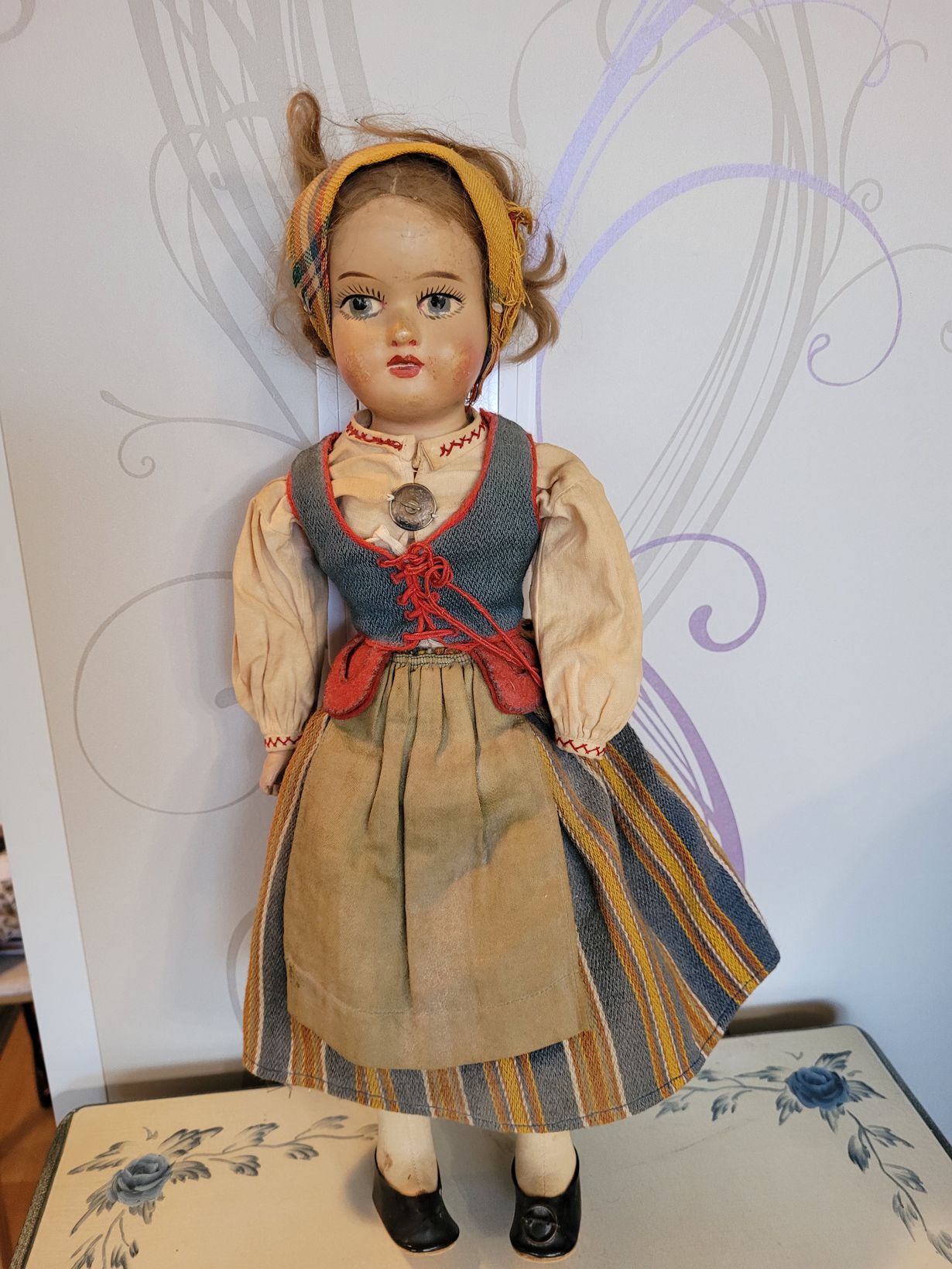 Kuvassa on noin 70 vuotta vanha kansallispukuinen nukke, jonka olen saanut kummitädiltäni. Nukke on kulkenut matkassani koko tähänastisen elämäni ajan ja kulkee edelleenkin. Sillä ei ole kukaan muu saanut koskaan leikkiä. Nukelle olen kuulemma antanut nimeksi Emäntä.