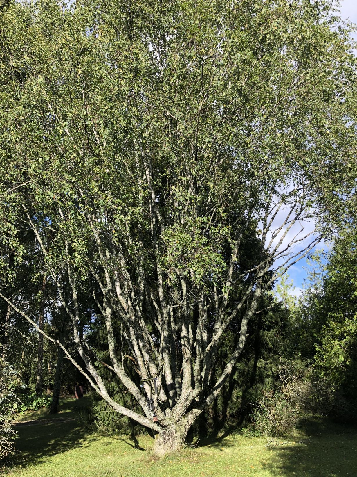 Tämä koivu pihallamme on ollut lapsille ja ehkä vähän vanhemmillekin kiva kiipeilypuu noin 30 vuoden aikana jotka olemme asuneet samalla tontilla puun kanssa. Koivun ikä ei ole tiedossa, mutta vuodet eivät paljoa muutoksia ole tuoneet.