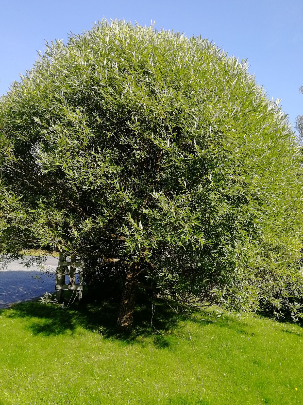 Vuosi 2006 heti ensimmäisenä kesänä ensimmäiseen omaan pihaan ostin pienen taimen terijoen salavaa, olin aina automatkoilla ihaillut muiden pihoissa. Pallomainen muoto oli aina mielestäni niin kaunis. Nyt 15 vuotta olen saanut ihailla sen kasvua portin pielessä. Olisin halunnut useamman ja koko rivin , mutta puoliso ei halunnut silloin enempää.