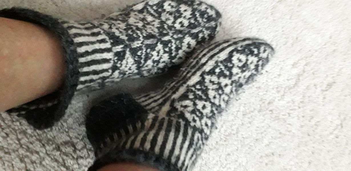 Ystävän kutomat upeat villasukat yllättivät ystävänpäivänä. Käytössä kesälläkin.