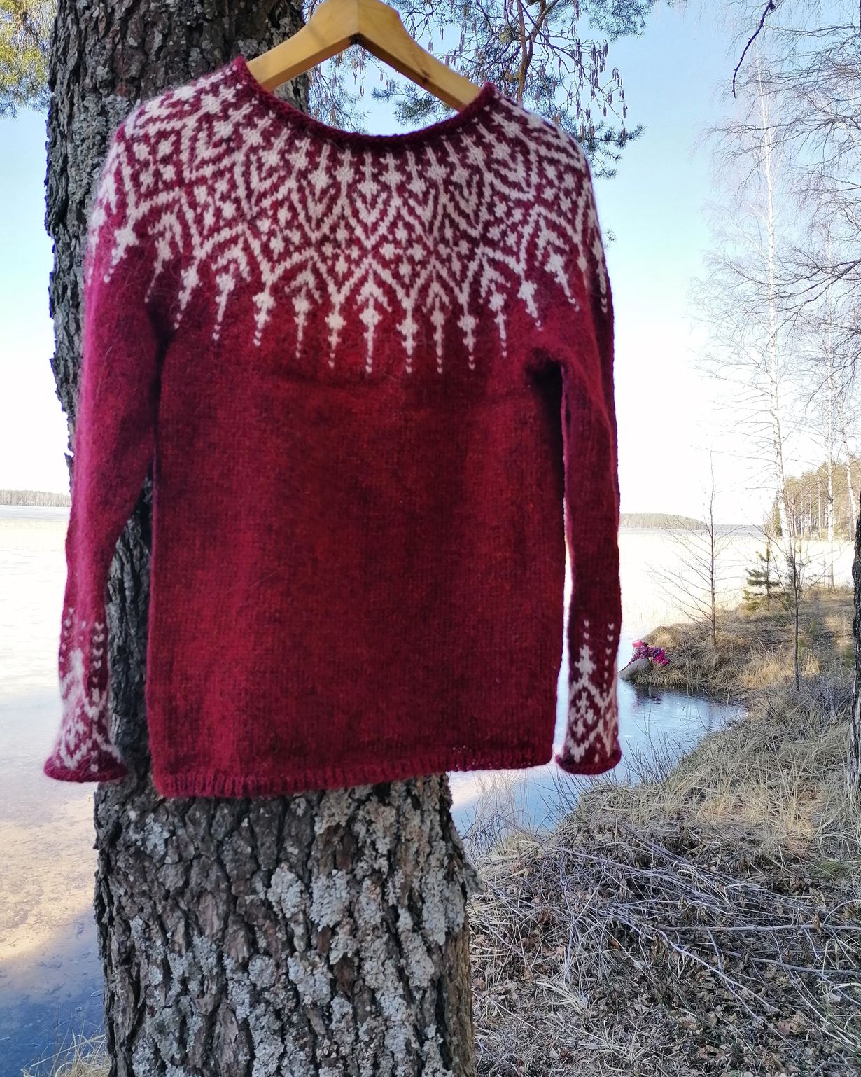 Kaikella rakkaudella neulottu villapaita. Mallin nimi on Gardengate.
