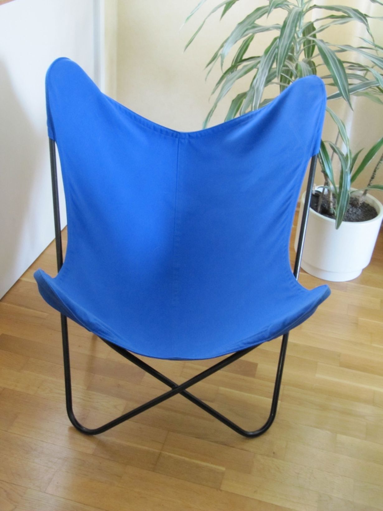 Ostin ensimmäisen lepakkotuolini jo vuonna 1971. Kankaan väri oli silloin oranssi, seuraavaksi ostin ruskean kankaan tuoliin ja nyt siinä on tämä sininen. Minulla on myös toinen samanlainen tuoli myös sinisellä kankaalla.Tuoli on väliaikaisesti ullakolla koska tilaa ei ole tällä hetkellä kuin yhdelle tuolille. Näitä tuoleja en kadota koskaan ne on niin tärkeitä minulle.