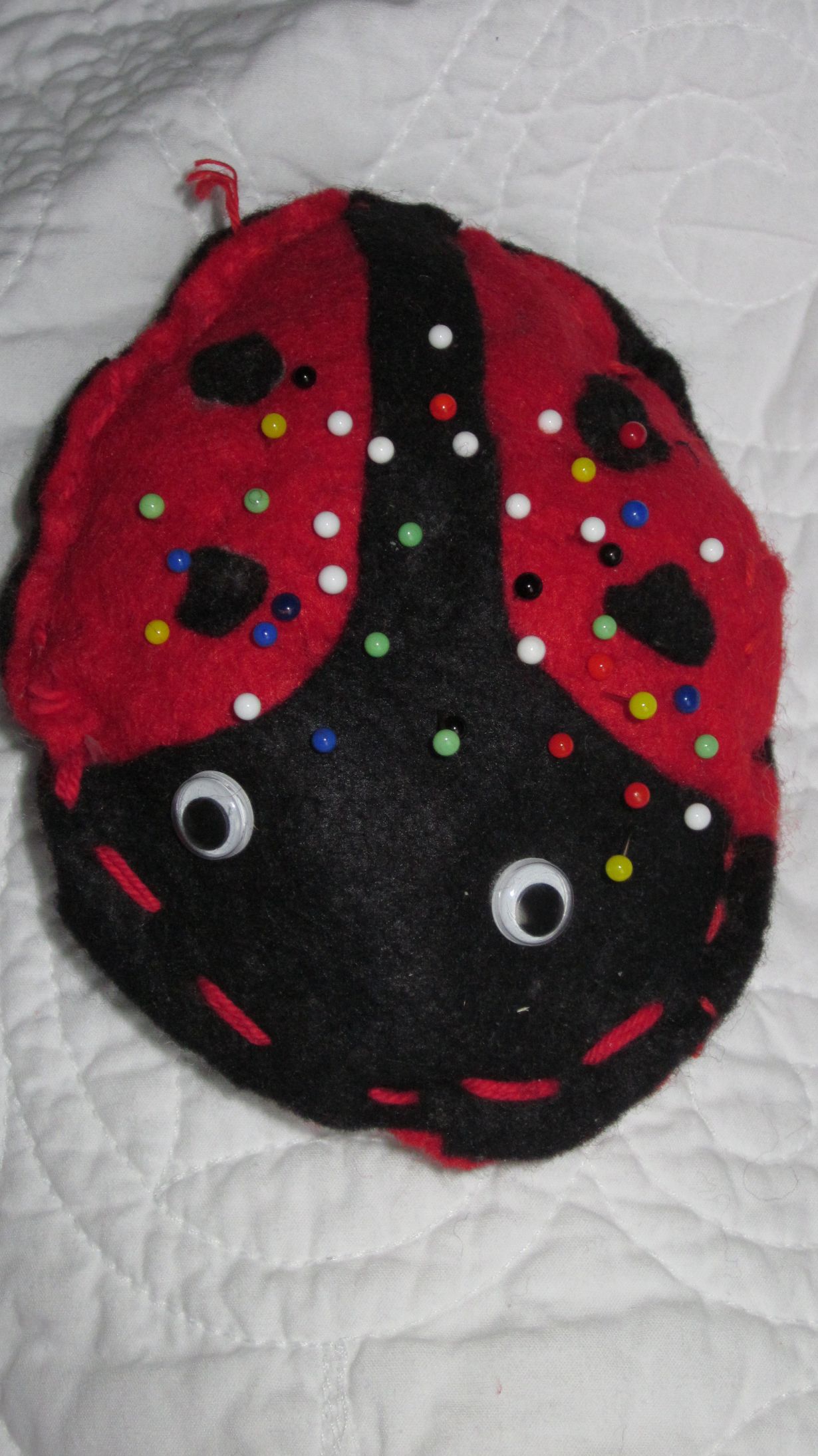 Poikani koulussa tekemä neulatyynty, joka on jo 19 vuotta vanha. Kaikki lasteni koulussa tekemät tavarat ovat käytössä ja kaikkein arvokkaimmat.