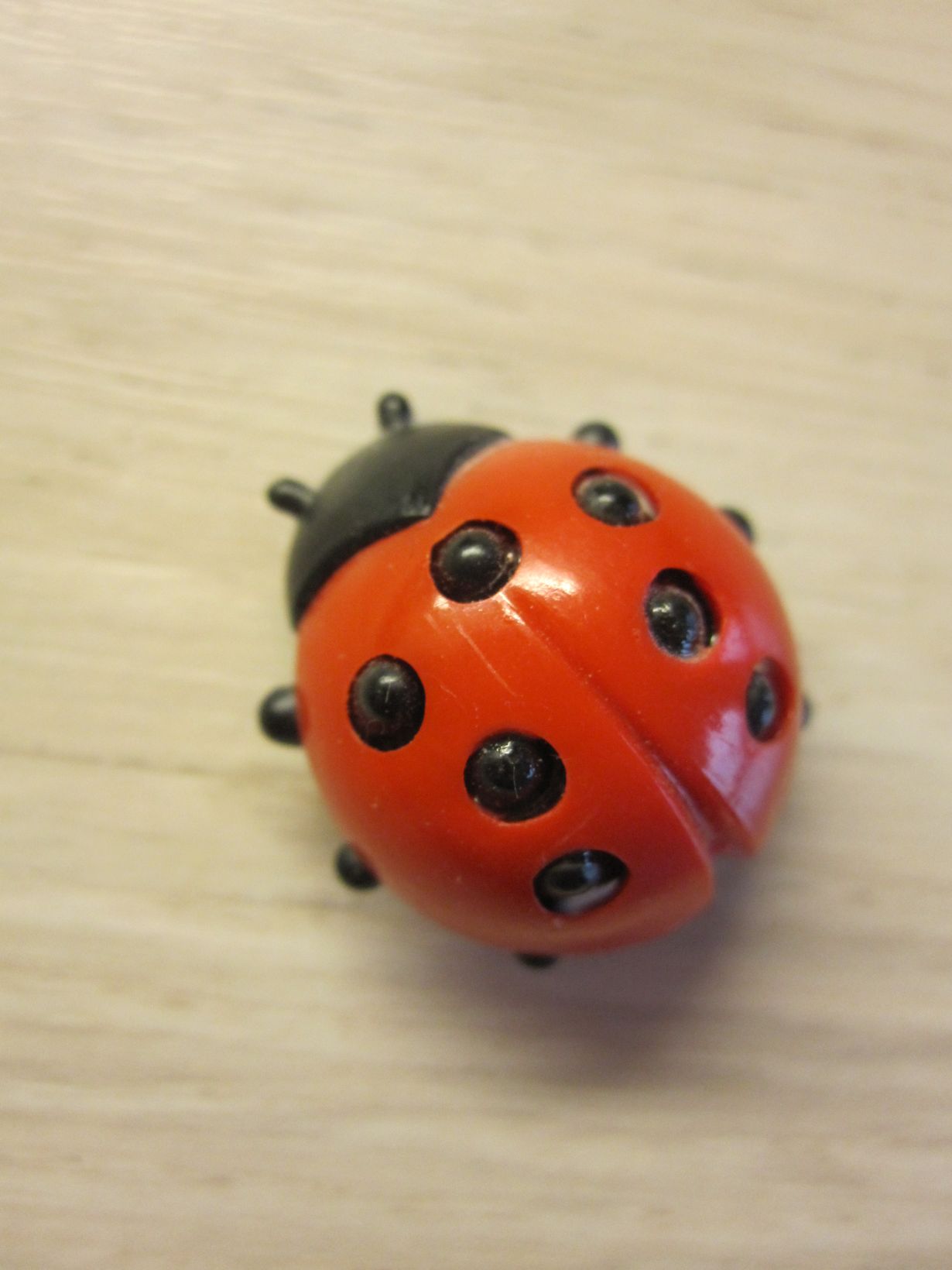 Tämä pieni leppäkerttu on kaikkein pienin monista magneeteistani. En yhtään muista, mistä se on jääkaappimme oveen lentänyt, mutta kauan se on siinä viihtynyt. Jääkaappi ja osoitekin on kyllä matkan varrella vaihtunut.