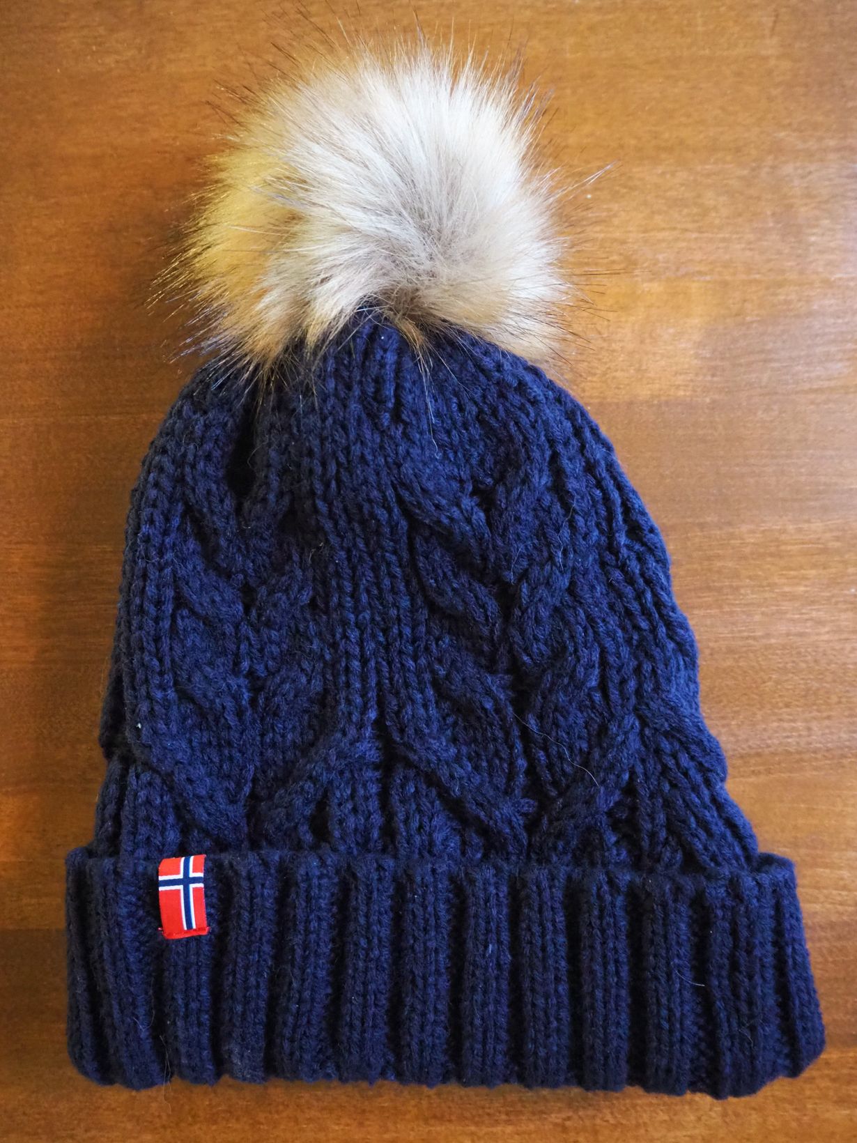 Norjan Bergenistä ostettu ihanan lämmin tupsupipo. Saimme piponhakureissun takia parkkisakon ja mieheni totesi pettyneenä "nyt oli kyllä liian kallis pipo".