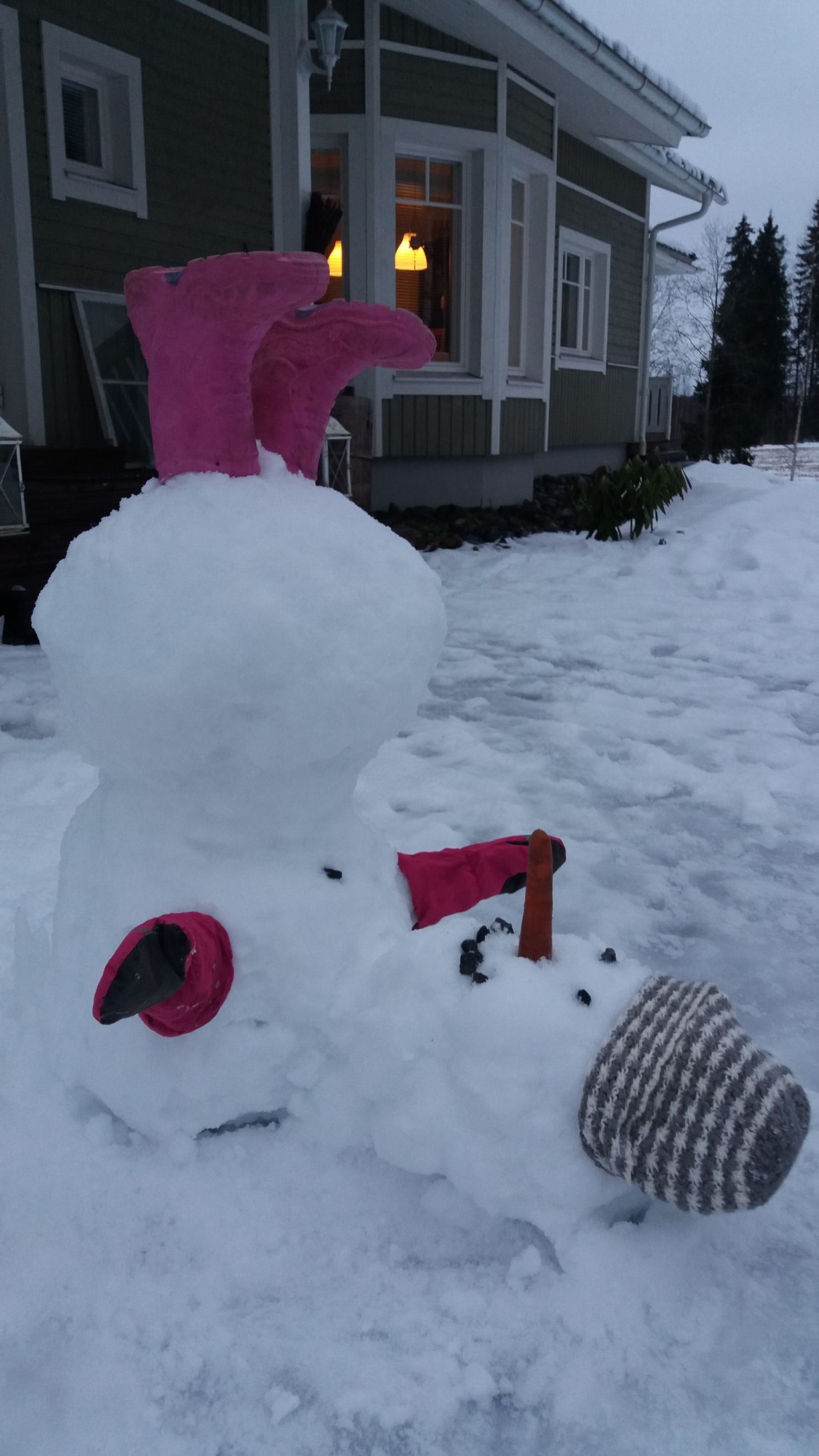 Kuvaa lumiukkosi - voit voittaa Linnea-aterinsetin Liukastunut lumiukko Kati 28.12.2017 klo 15:26 Lumiukko tallusteli kohti pirttiä, mutta juuri oven luona pyllähti pyrstölleen.