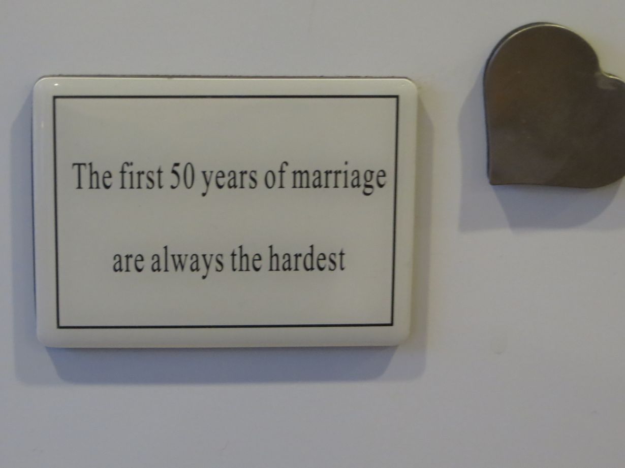 Tämä mietelausemagneetti saa meillä kyläilevät pariskunnat aina hymyilemään ja nyökyttelemään, että totta tuo lienee! Yhtä hyvin huvittaa myös pariutumattomia (ehkäpä vahingonilosta).