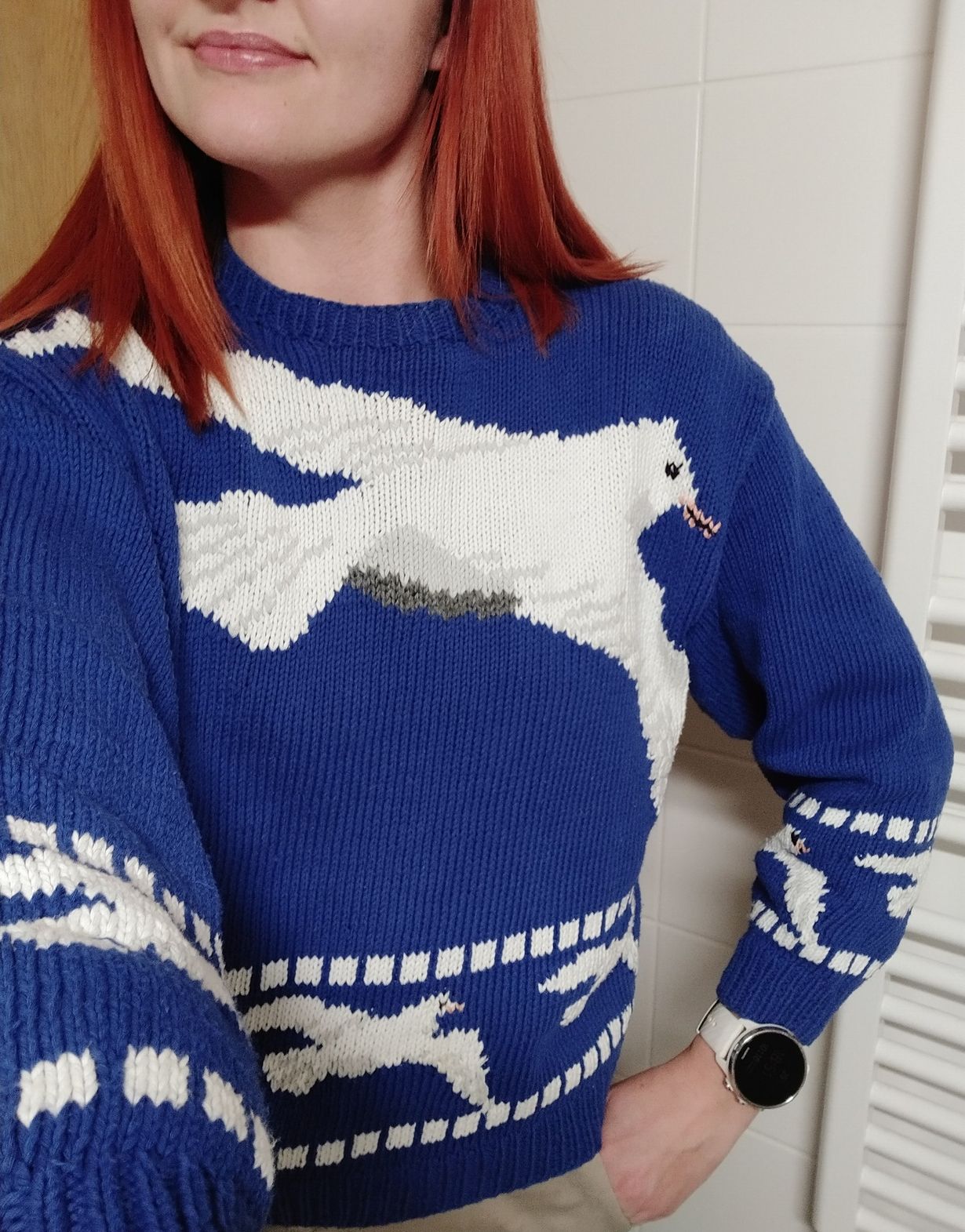 Löysin lahjoituskirpputorilta jonkun itse neuloman lokki villapaidan 3 eurolla. Kuka on neulonut paitaansa lokkeja? Miksi lokeista on luovuttu?