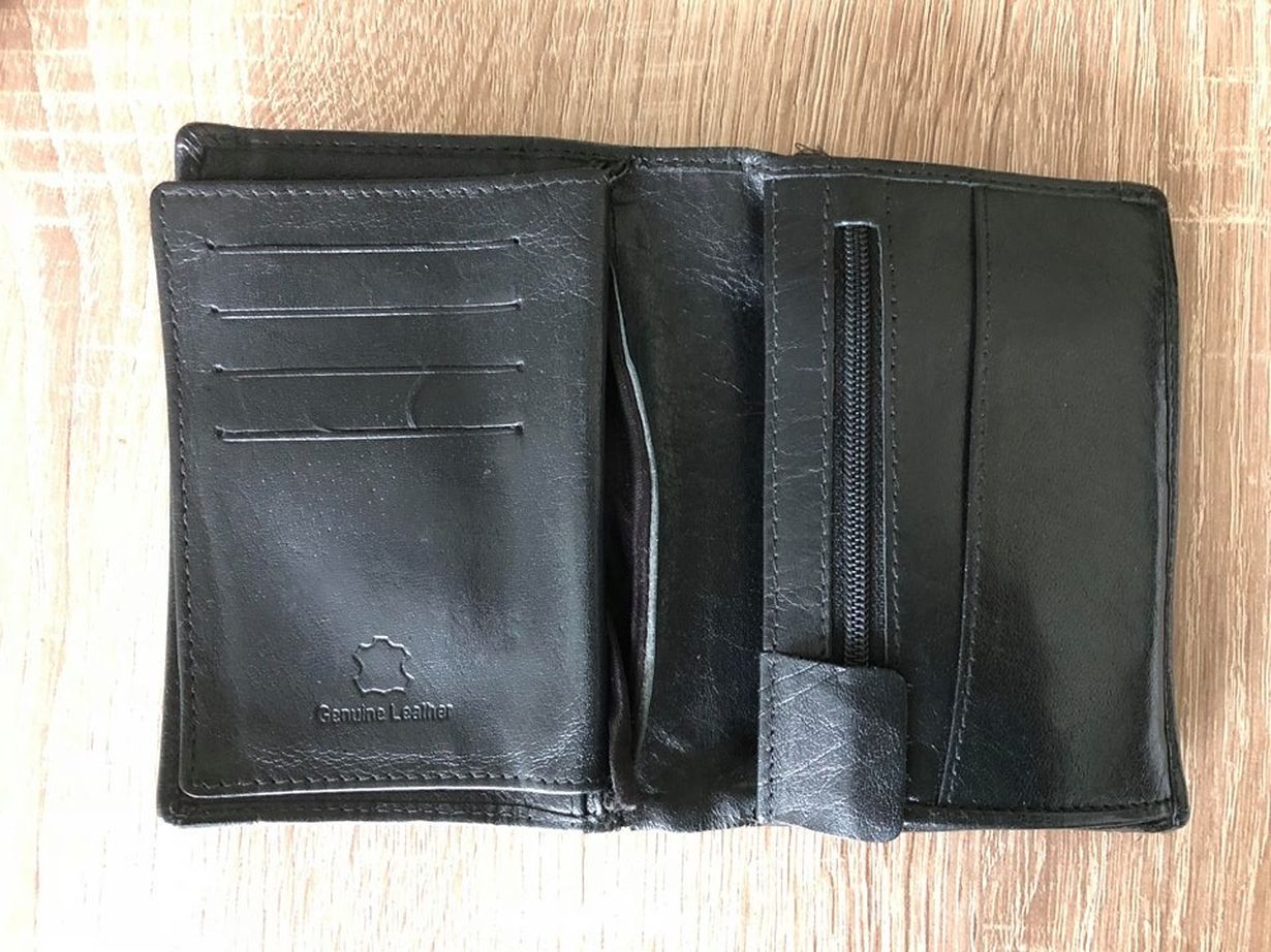 Lompakko, jossa on kolikoille oma lokero ja kortti- ja setelitaskut
