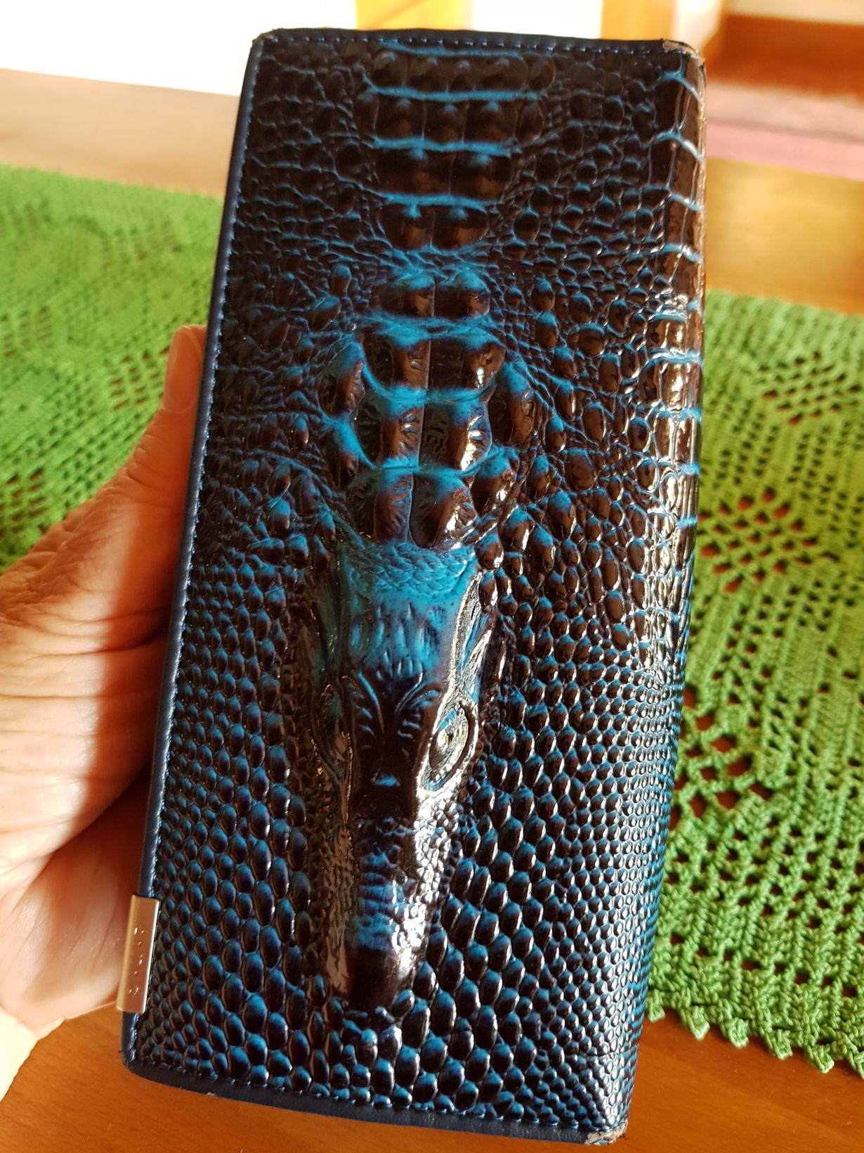 Halpa löytöni kirpputorilta; aito krokotiilin-tekonahkainen kukkaro. Jälkeen vuosien, yhä vain kestää ja tykkään siitä. Yritän pitää siitä hyvää huolta.
