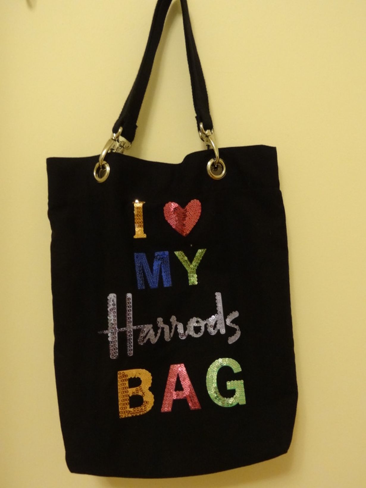 Vuosi sitten Lontoossa käydessäni ostin tämän kassin Harrodsin tavaratalosta. Siitä on tullut mieluinen ja käytänkin sitä vakituisesti jumppakassina.